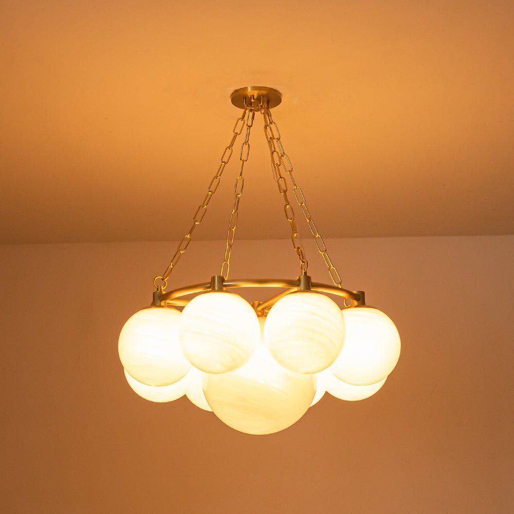 Messinkinen 9-vaalea alabasteri maitovalkoinen lasipallopyörän kattokruunu
