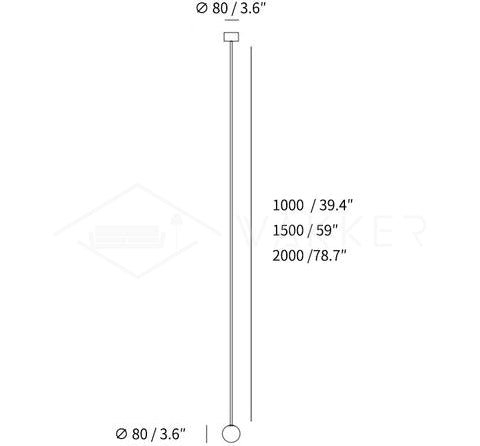 Koko: Halkaisija 20 cm x K 150 cm / ∅ 7,9″ x K 59″