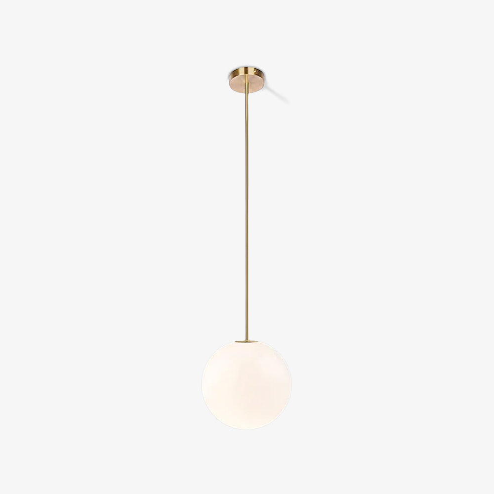 The Brass Architectural Collection Pendants on valaisinperhe, jossa on pallomainen riipus, joka on ripustettu ohueen messinkitankoon. Moderni ja tyylikäs riippuvalaisin, maapallo on valmistettu suupuhalletusta opaalilasista, jota on saatavana 7 eri kokoa.