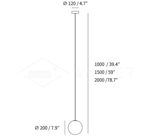 Koko: Halkaisija 20 cm x K 200 cm / ∅ 7,9" x K 78,7"