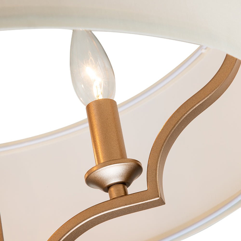 Kolme valoa • Valkoinen kangasvarjostin • Rumpurakenne • Kynttilän muotoinen • Messinkiviimeistely • E12/14 kynttelikköpolttimot (ei sisälly) • Kiinteä • UL-listattu