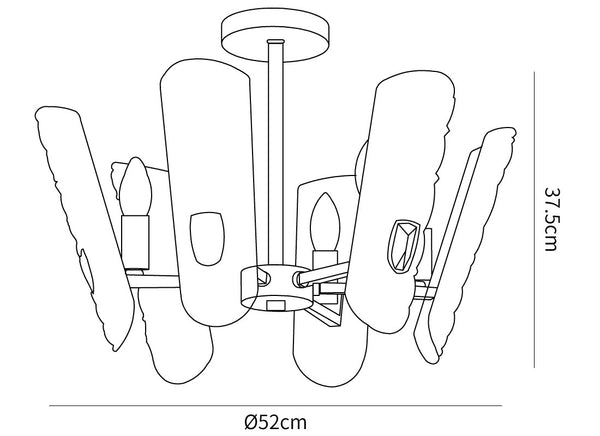 6 päätä Koko: Halkaisija 52 cm x K 37,5 cm / Φ 20,5" x K 14,8"