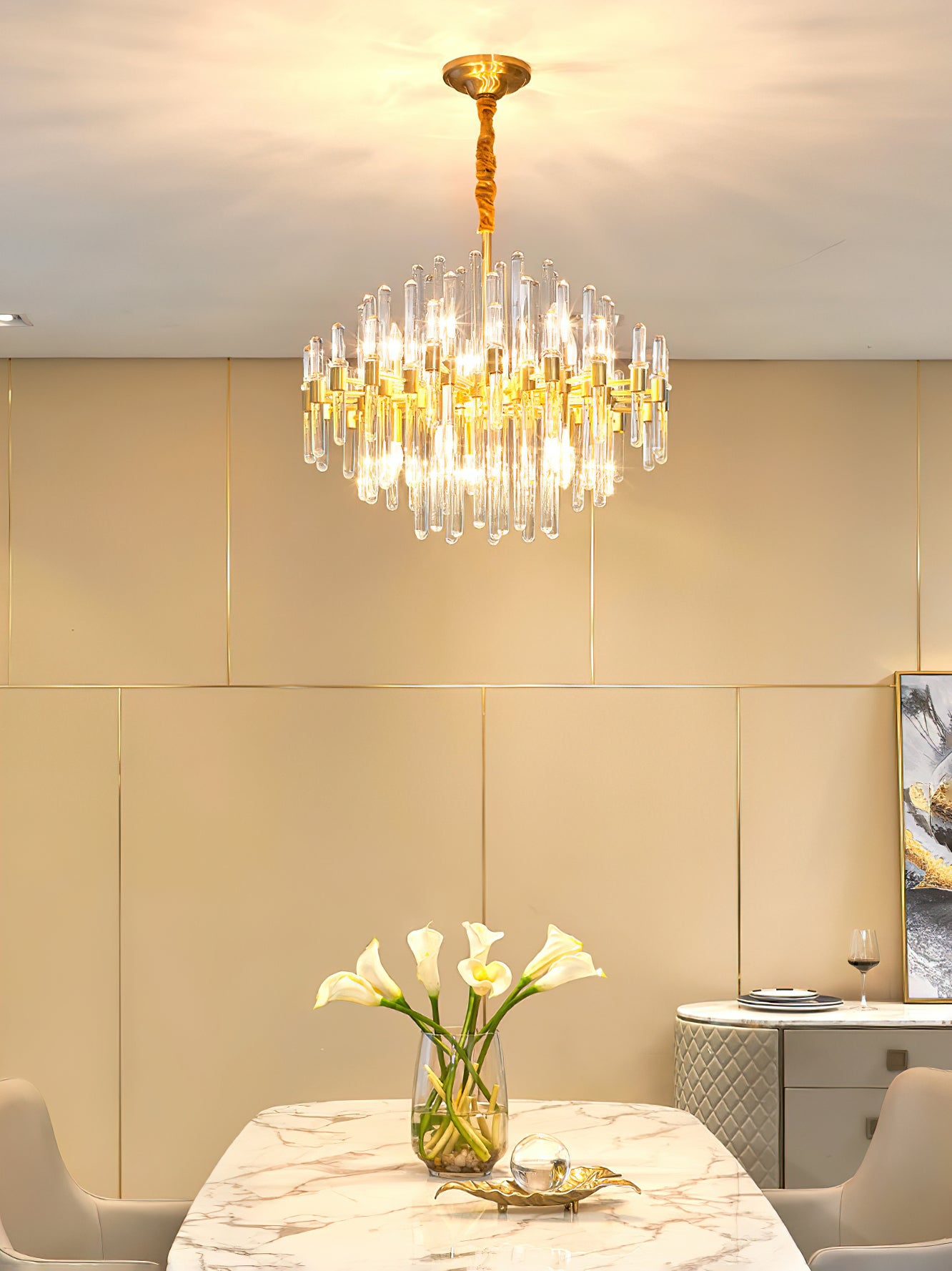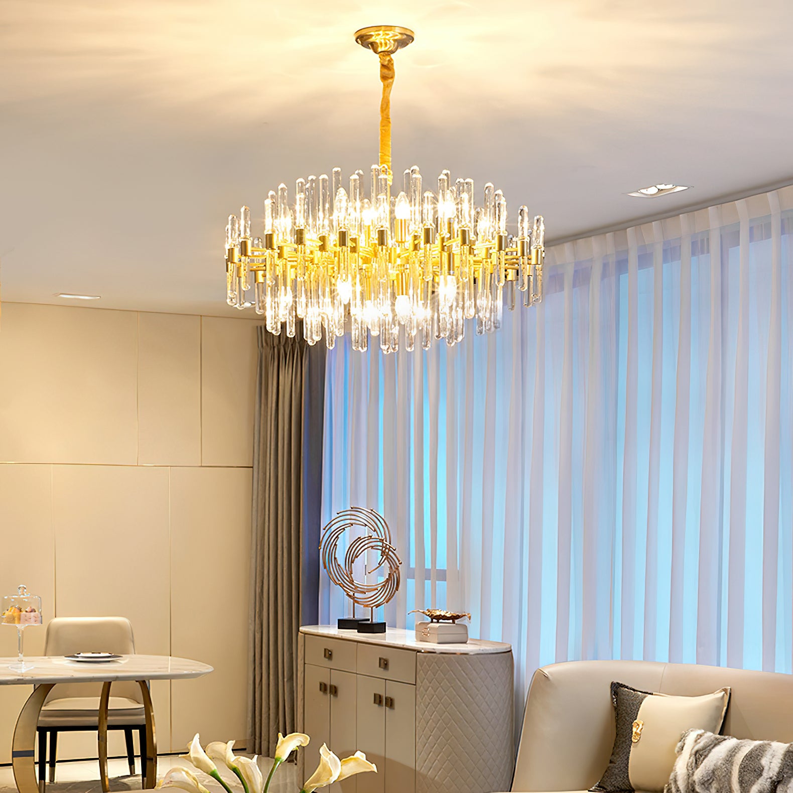 Marilyn Luxury Feather Crystal -kattokruunu, olohuone