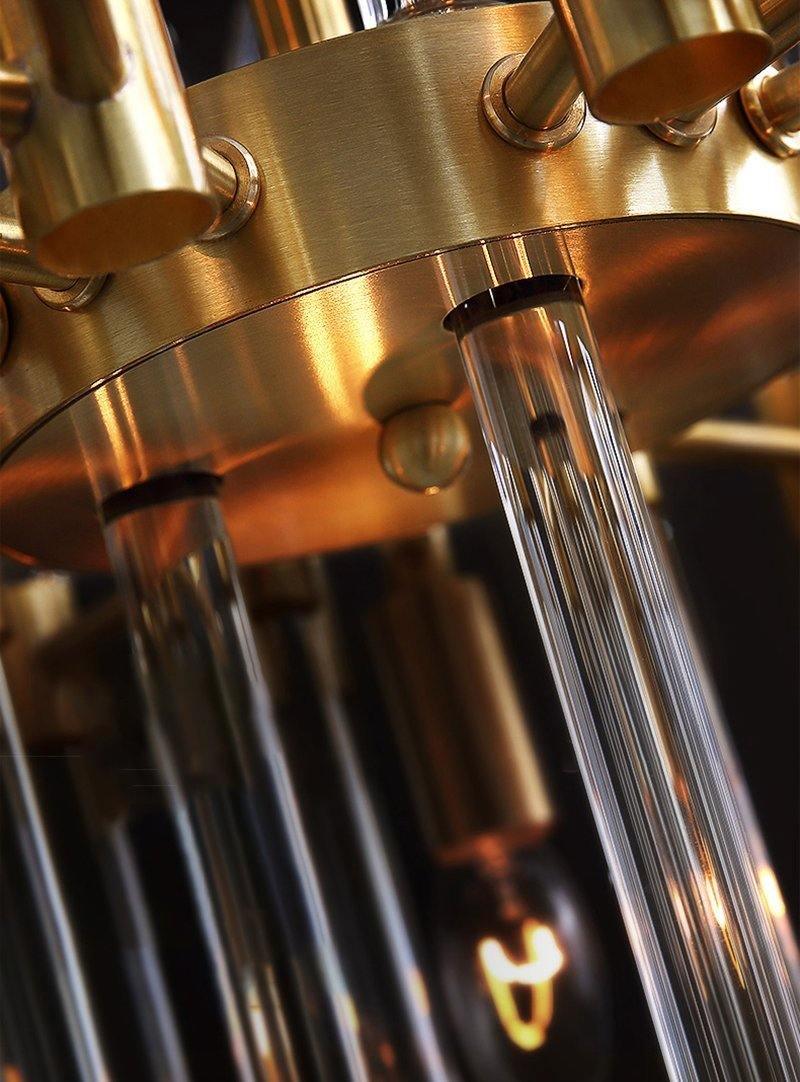Antiikissa messinkikruunussa on nykyaikainen ja tyylikäs starburst-muotoilu. Tämä uskomaton kattokruunu on valmistettu messingistä, jossa on vintage-vaikutteinen harjattu messinkiviimeistely, ja se on saanut vihjeensä vuosisadan puolivälin moderneista malleista. Se on korostettu kirkkailla lasitangoilla, jotka antavat sille kimaltelevan ja tilavan vaikutuksen. yhdistää täydellisesti menneisyyden modernin eleganssin ja uuden tunnelman. Viimeistelty kauniisti hienostuneella kiillotetulla antiikkimessingillä, jota korostavat kirkkaat lasitangot, jotka on tarkoitettu kestämään iät. Valmistettu kiinteästä messinkirakenteesta näyttämään upealta.