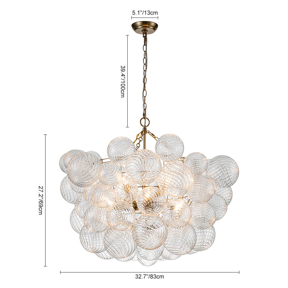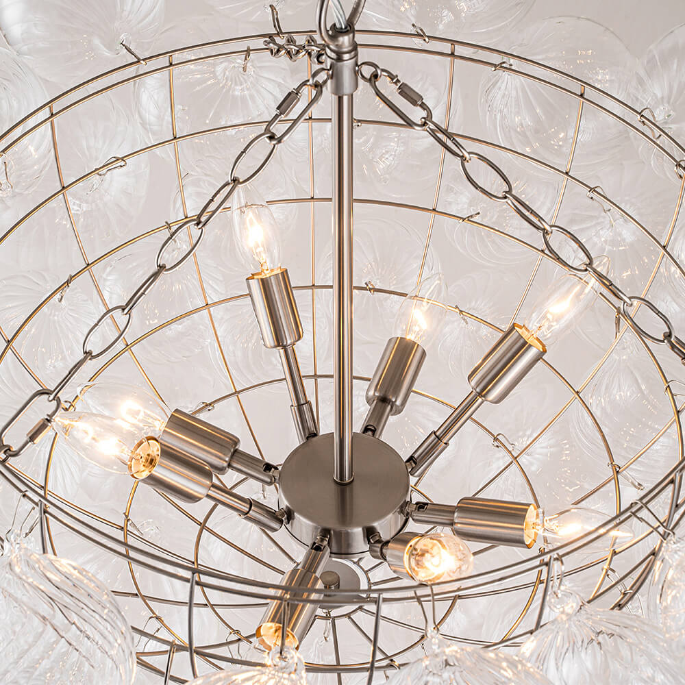 Tämä moderni kuplakruunu on ryhmitelty upeisiin ryhmiin, ja se tarjoaa silmiinpistävän romanttisen ja fantasiavisuaalisen ilmeen.Tässä maapallon kattokruunussa on hieno taidokkaat uurretut lasipallot, jotka kerääntyvät ylellisellä messingillä tai nikkelillä viimeisteltyyn kulhon runkoon. Kun kytket tämän klusteripallon kuplakruunun päälle, valaistus virtaa uurretussa lasissa kuin samppanja ja levittää upean tunnelman tilaan. Tämä upea rypälelasimainen maapallokruunu on rohkea ja upea aksentti, joka korostaa minkä tahansa olohuoneen, ruokasalin, eteisen, makuuhuoneen, kylpyhuoneen tai eteisen sisustusta.