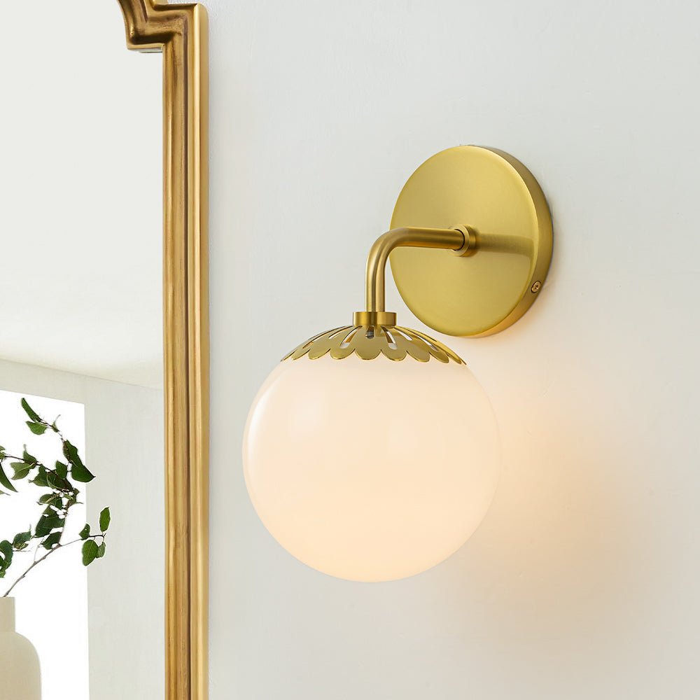 Messinkinen Daisy 1-kevyt opaalilasipalloseinävalaisin