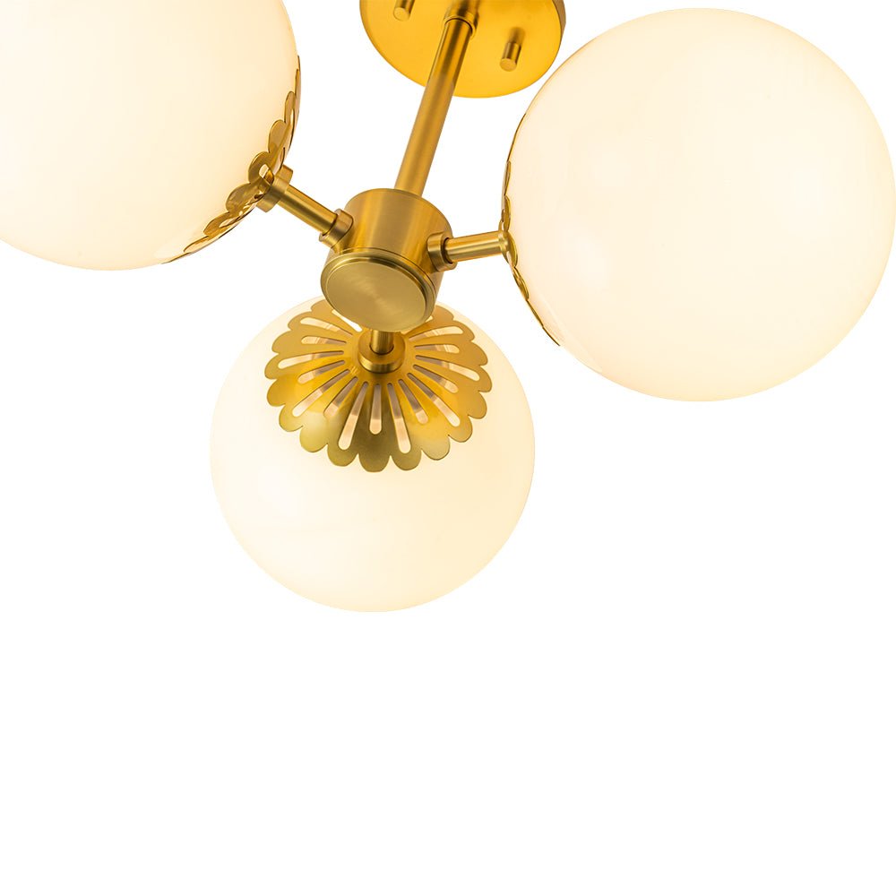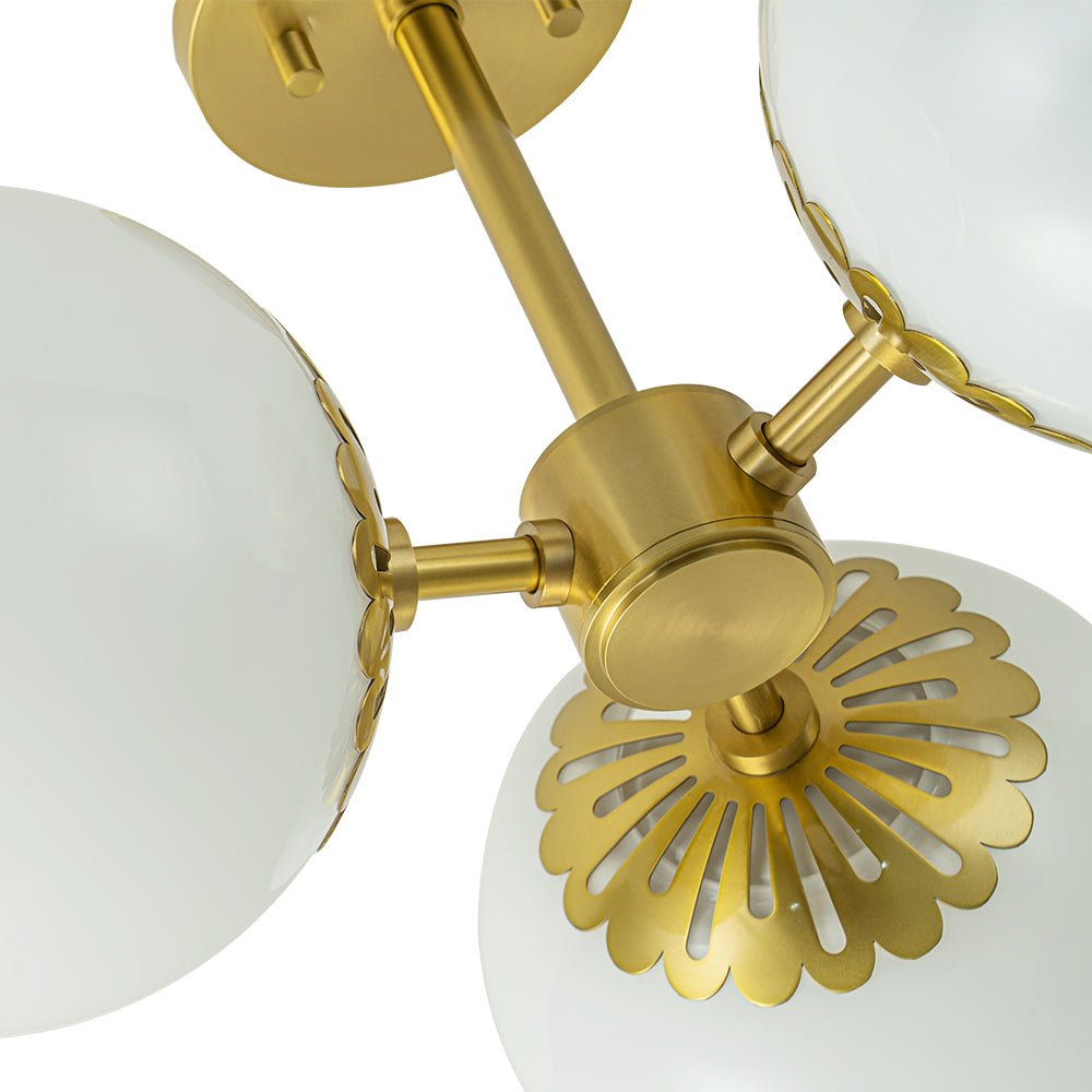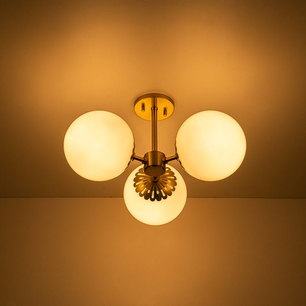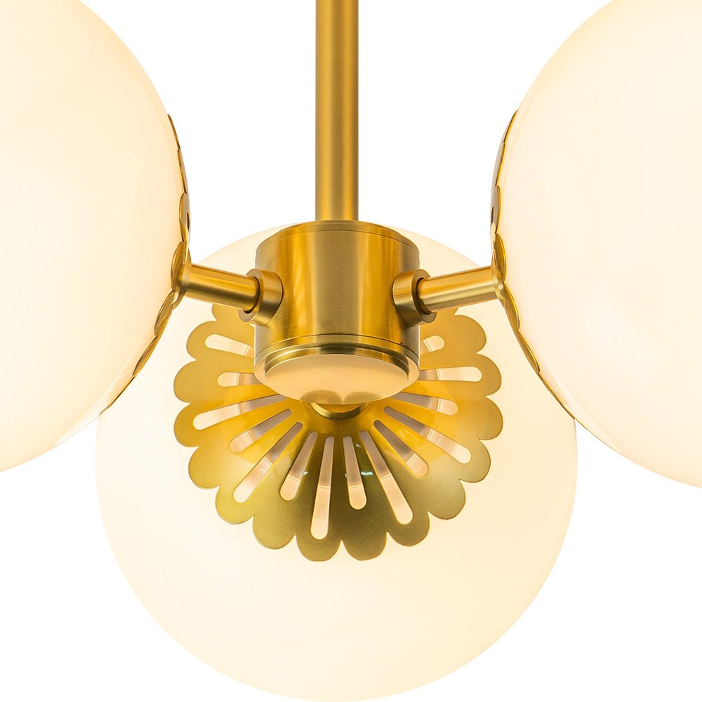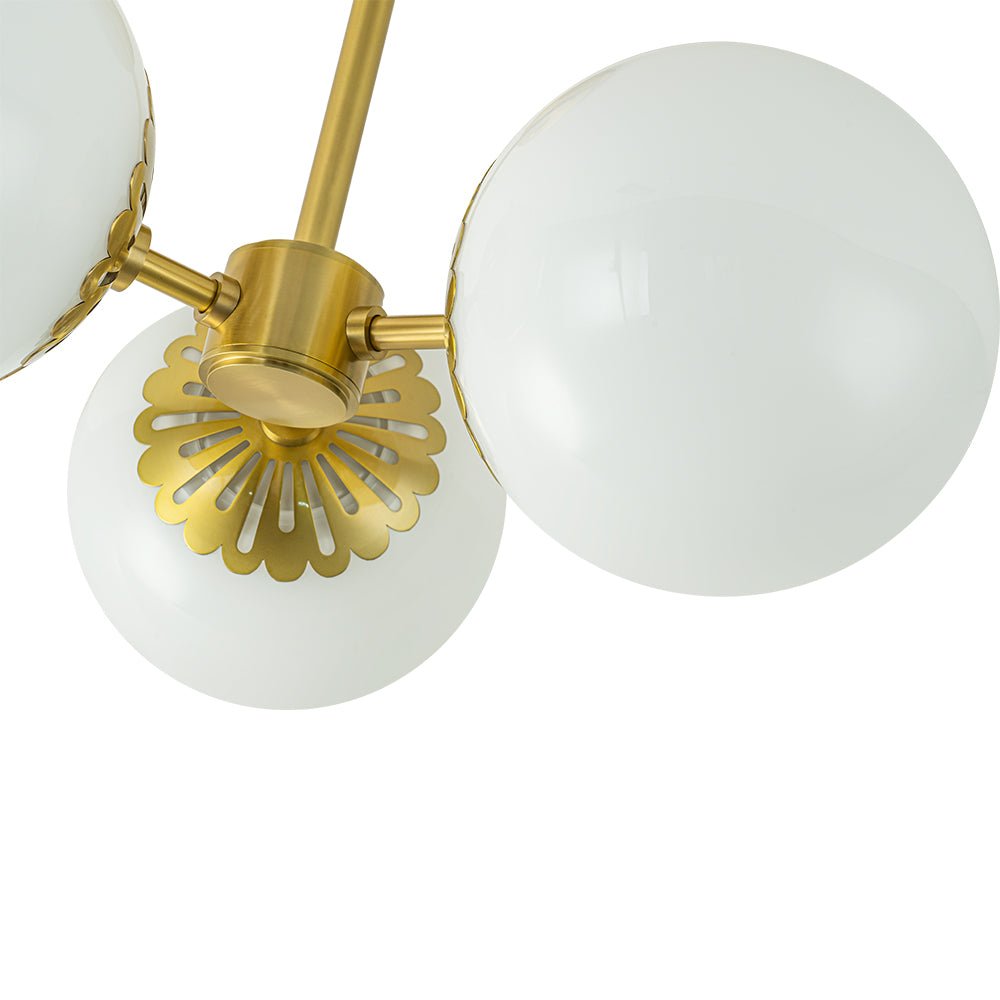 Kolme valoa • Sputnik-tyyli • Opaalilasipallot • Daisy-muotoilu • Kiillotettu messinkiviimeistely • E26 Medium-lamput (ei sisälly) • Kiinteä • UL-listattu