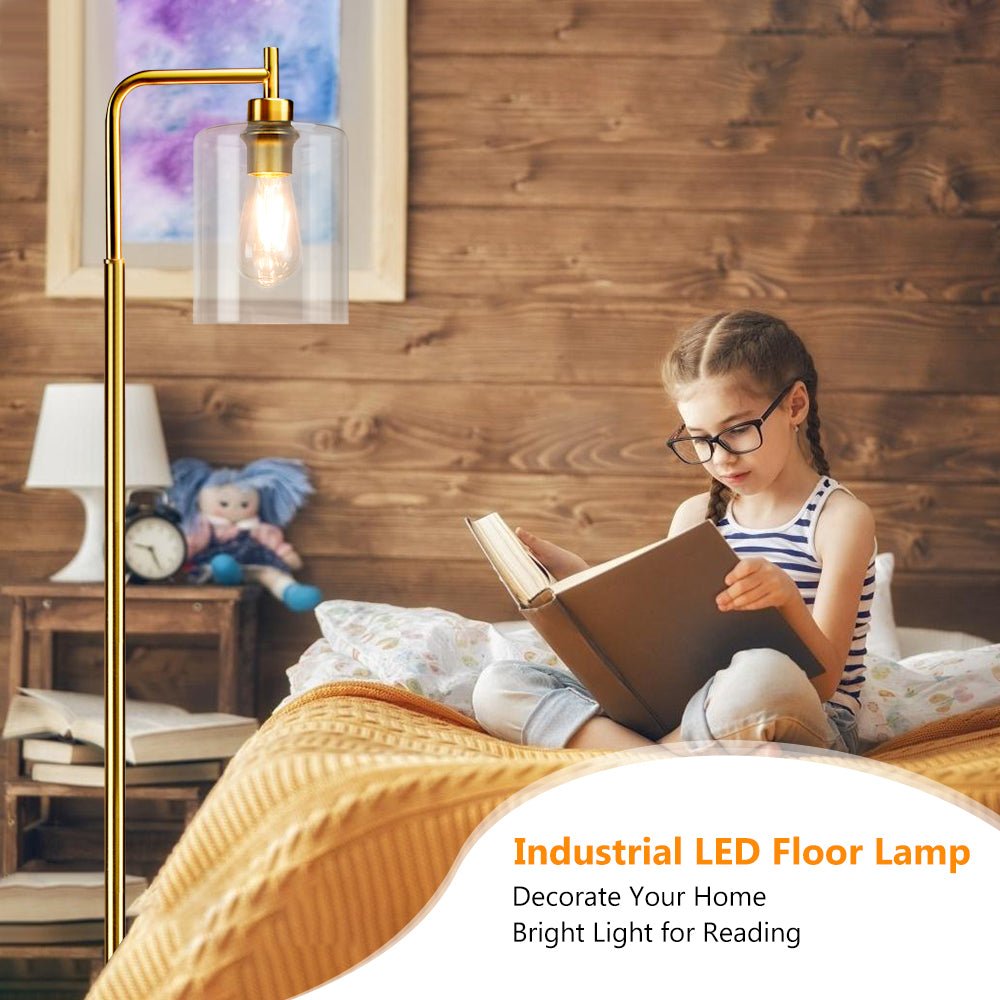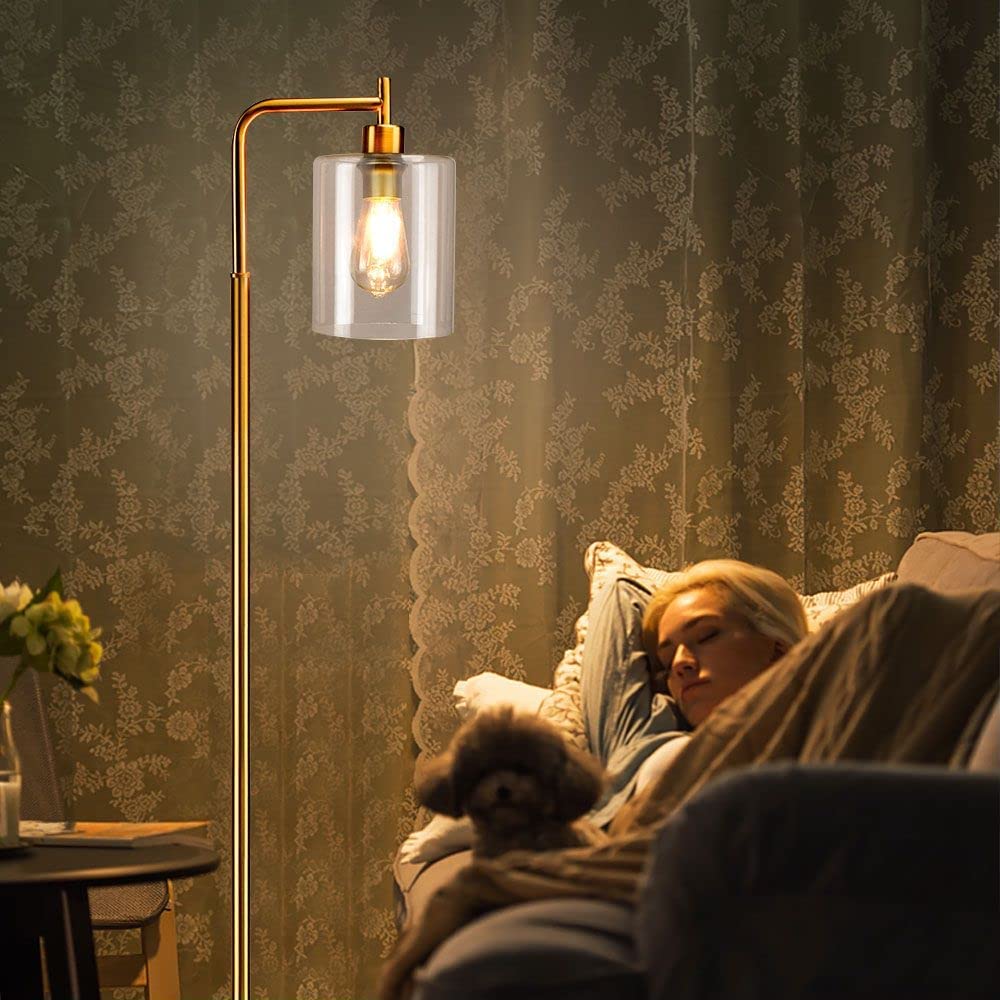 Moderni DLLT-lattiavalaisin, korkea metallinen lukuvalo ja riippuva lasivarjostin, maalaistalossa seisovat teollisuuslattiavalaisimet, korkea messinkivalaistus olohuoneen makuuhuoneen toimistoon (lamp