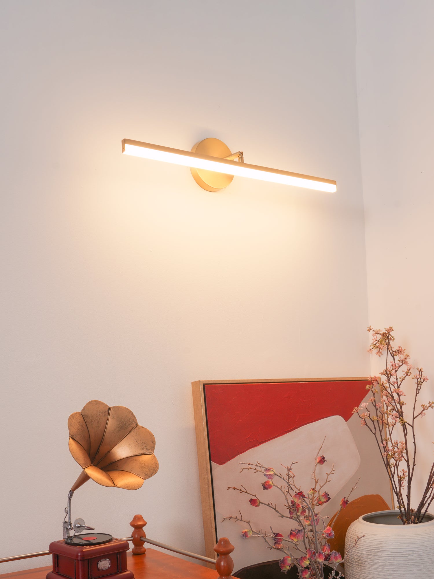 Tässä LED-kylpyhuoneessa on moderni puhdas muotoilu, jossa etuvalon suojus on akryylia ja takapaneeli messingistä. Se on LED-valolähde.