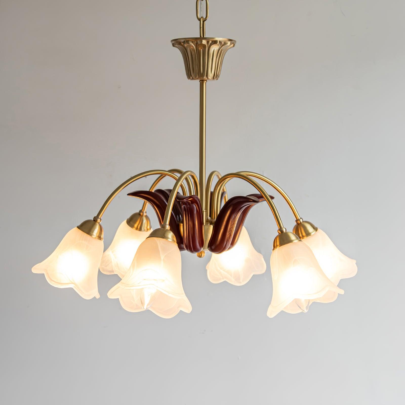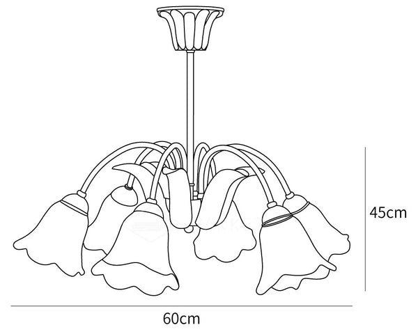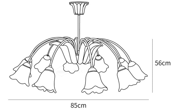 Tämä kattokruunu on valmistettu valkoisista lasikukista, jotka roikkuvat messingin oksissa, kukin taivutettu muotoon käsin. Se on tyylikäs ja ainutlaatuinen, ja se näyttää upealta peilin, kuvan päällä, makuuhuoneessa, olohuoneessa ja jopa eteisessä.