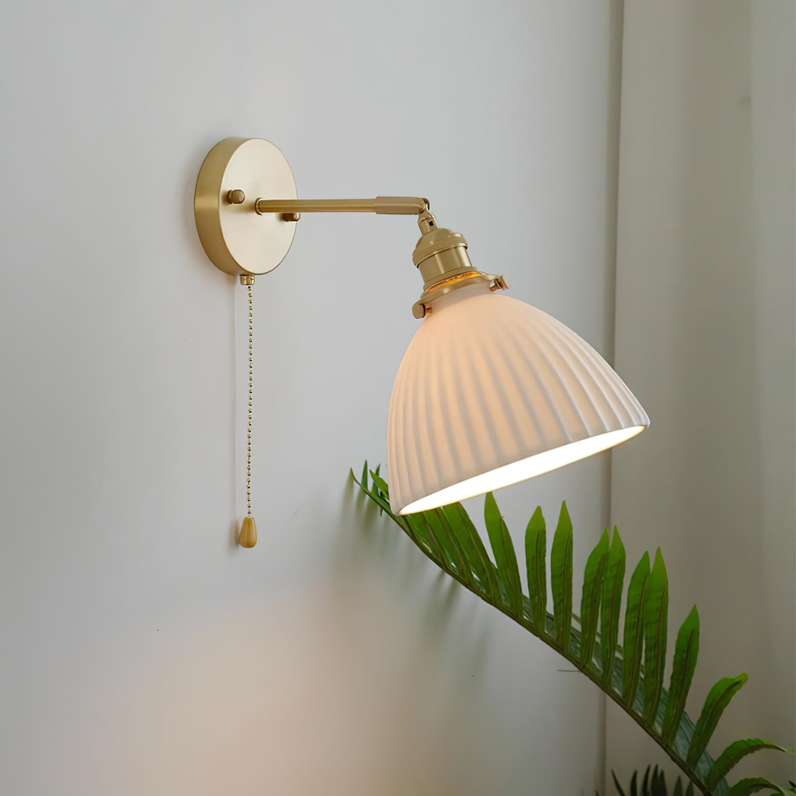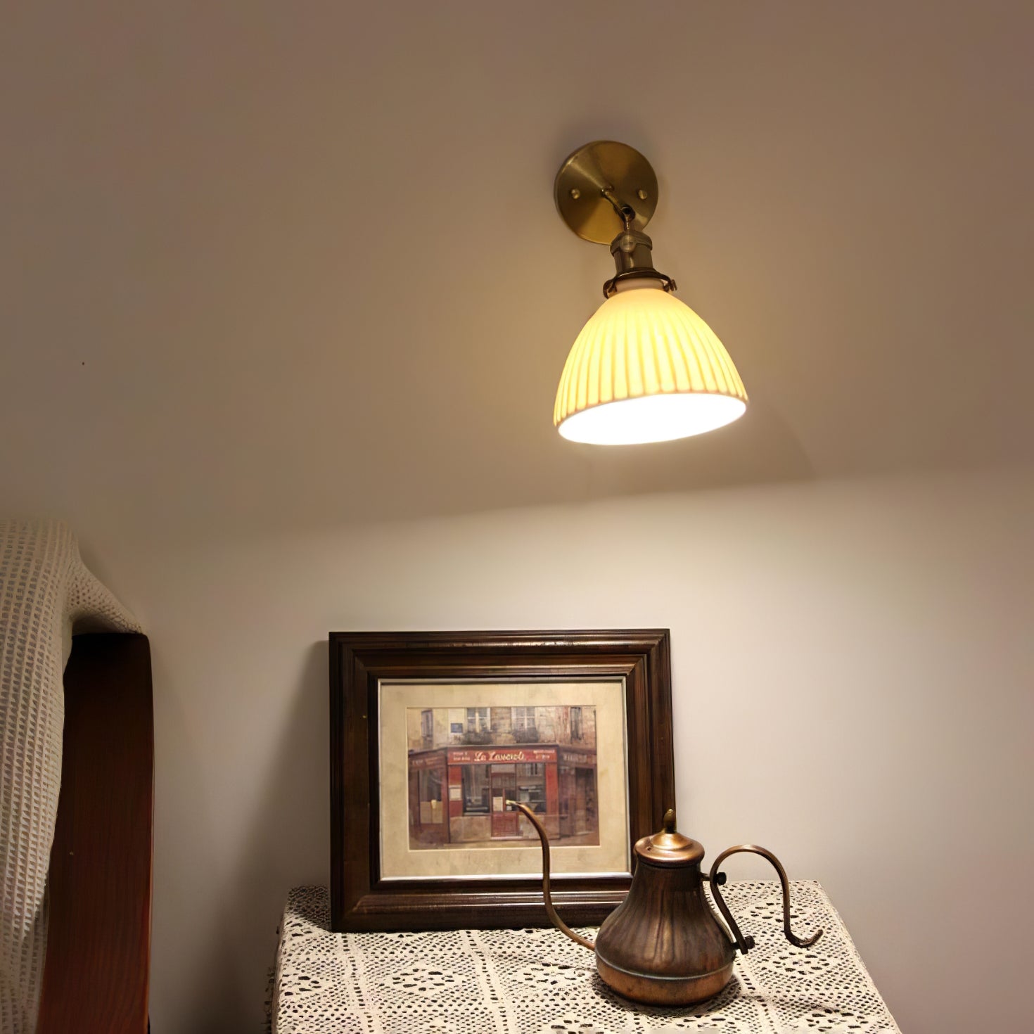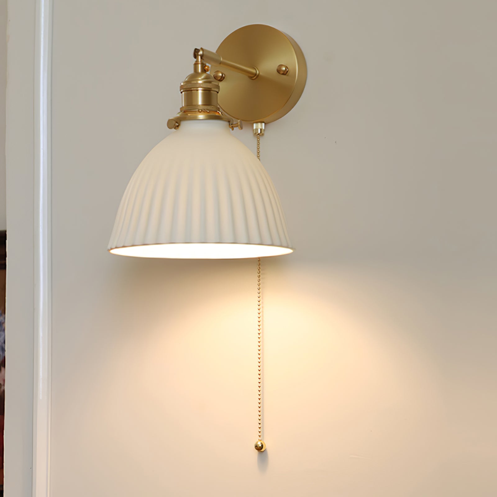 Lisää häikäisevän moderni muotoilu mihin tahansa huoneeseen messinkilaskostetulla keraamisella seinävalaisimella. Sen monimutkaiset laskostetut yksityiskohdat ja täysin luonnollinen keraaminen materiaali tekevät tästä valaisimesta sekä kauniin että kestävän. Huippuluokan messinkiviimeistelyn ansiosta tämä lamppu tarjoaa varmasti hienostuneisuutta mihin tahansa huoneeseen.
