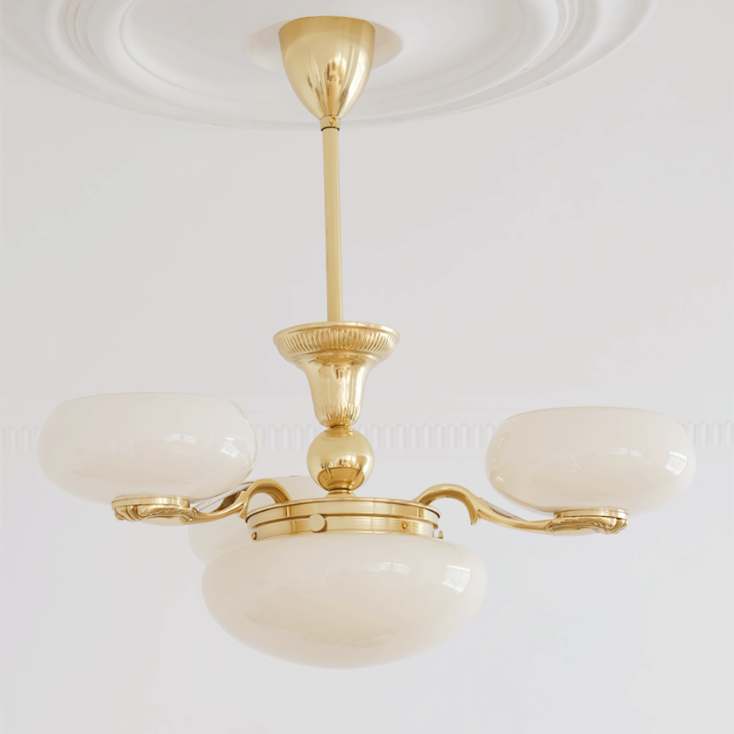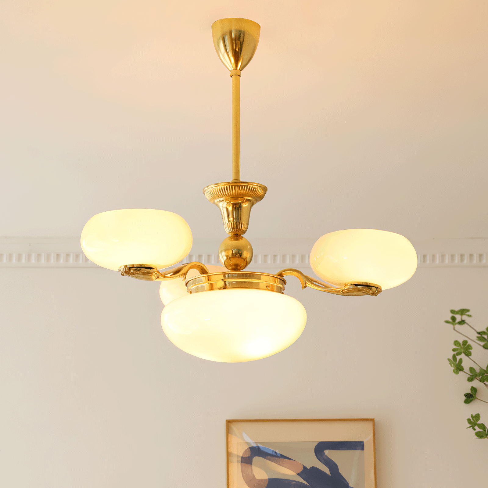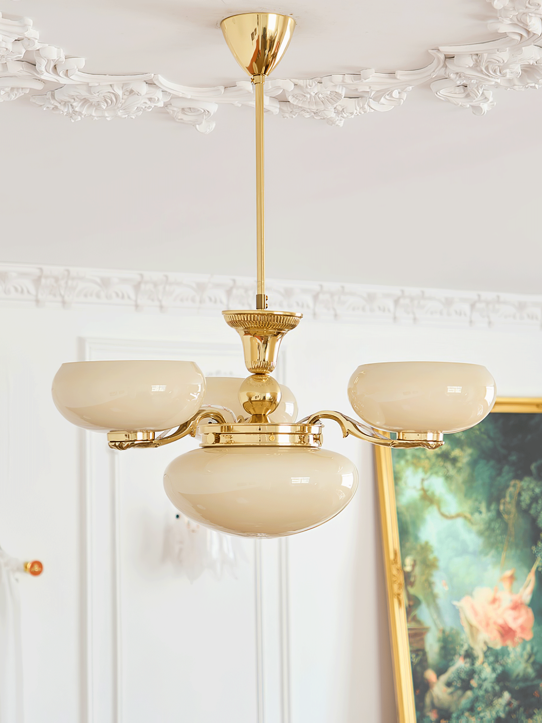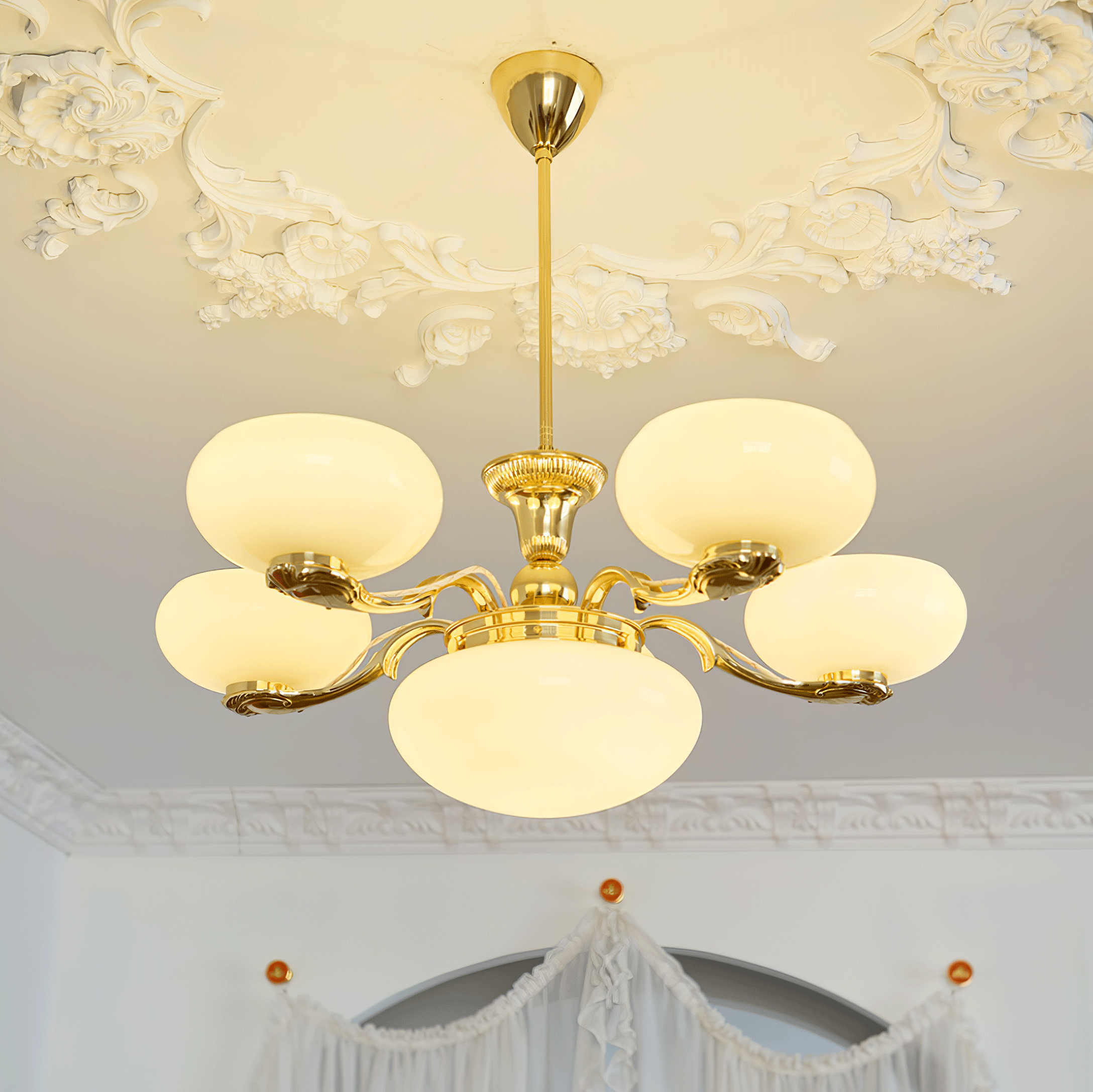 Brass Radiance Orb -kattokruunu, joka on suunniteltu yhdistämällä hienosti klassista messingistä charmia ja modernia muotoilua, on valmistettu korkealaatuisesta messingistä eleganssin ja kestävyyden takaamiseksi. Silmäänpistävä muotoilu sisältää viisi beigeä lasisävyä, jotka muodostavat yhtenäisen ja tasapainoisen kokonaisuuden. Beigen lämmin ja hajavalo luo kodikkaan ja elegantin tunnelman. Tyylikkäästi ripustettu Orb Chandelier erottuu harmonisesti missä tahansa huoneessa. Täydellinen niille, jotka arvostavat perinteisten materiaalien ja nykyaikaisen estetiikan yhdistelmää, messinki- ja beige-lasikruunu on enemmän kuin valonlähde; se on esitys hienosta mausta, joka huokuu lämpöä ja tyyneyttä.