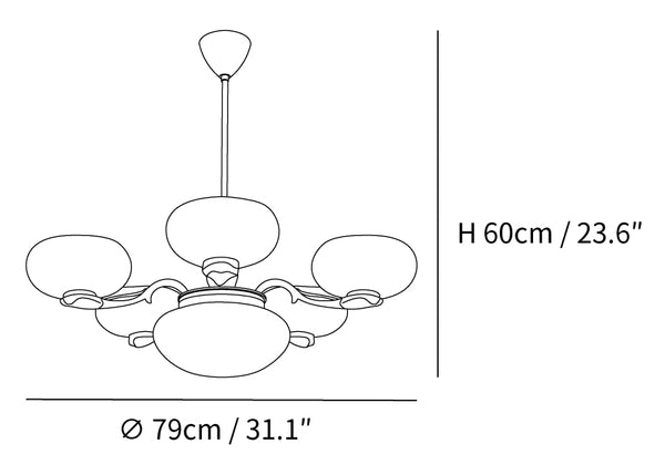 5+1 päätä Koko: Halkaisija 79 cm x K 60 cm / ∅ 31,1" x K 23,6"