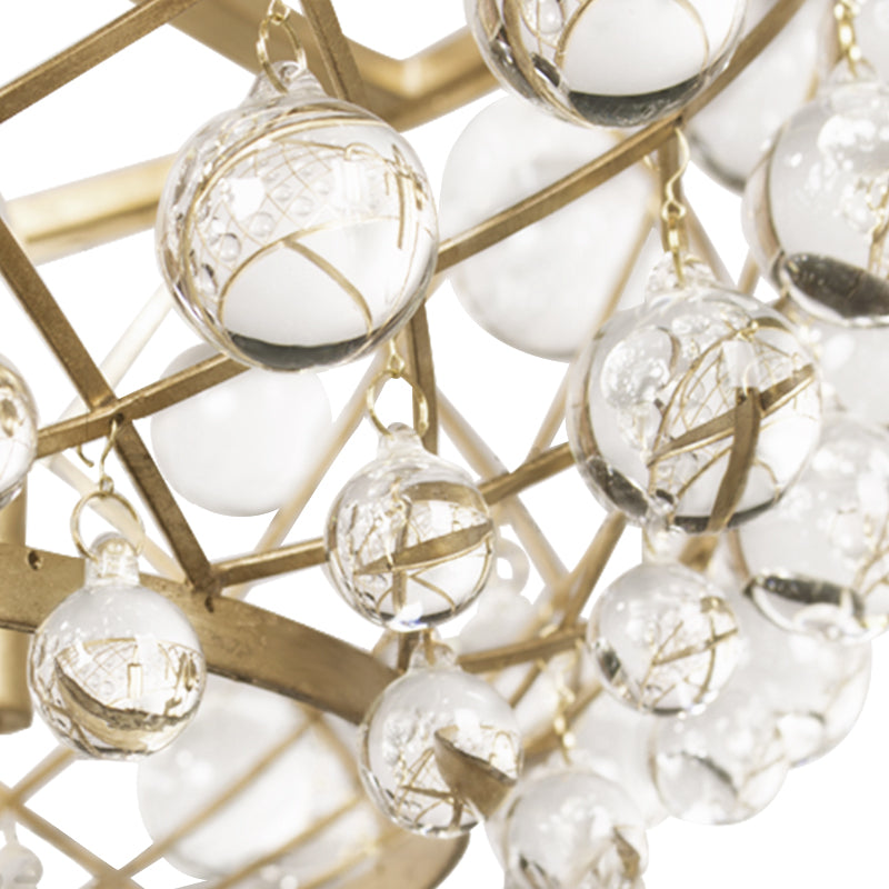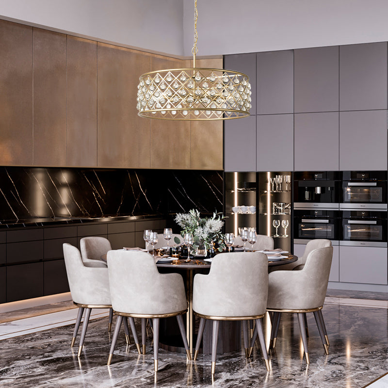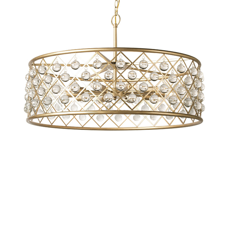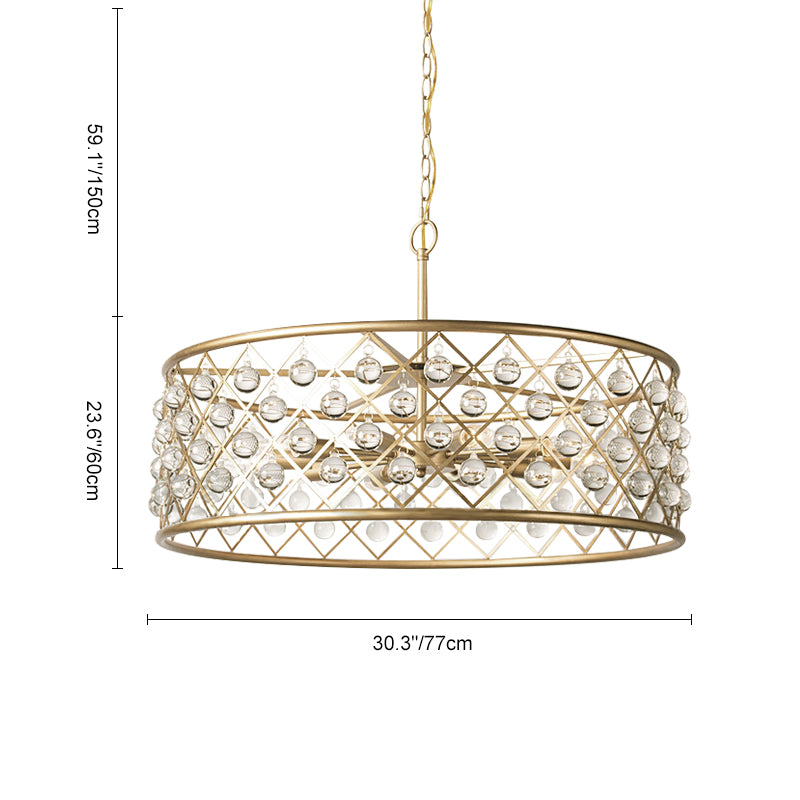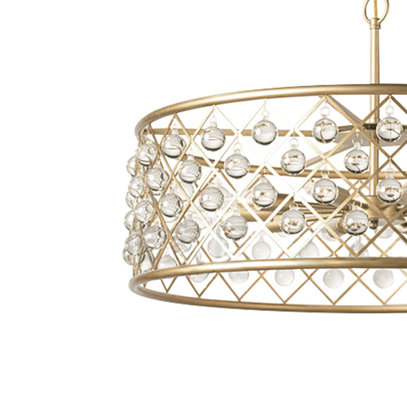 Moderni ja ylellinen kristallikruunu loistaa kirkkaasti joka kulmasta kymmenellä E12/E14-pohjaisella polttimolla (ei sisällä). Leveä rumpukehys ristikkäin muotoilluilla lasikristallipalloilla koristeltulla muistuttaa sadepisaroista hiljaisina kesäpäivinä. Tyylikäs messinkiviimeistely tekee tämän lasikristallipallokruunun ulkonäön houkuttelevasta upeaksi. Tämä leveä kristallikrumpukruunu on taitavasti näyttävä lisä täydentämään modernia ja vuosisadan puolivälin olohuonettasi, ruokailuhuonettasi, käytävää, aulaa ja suuria tiloja.Tiedot