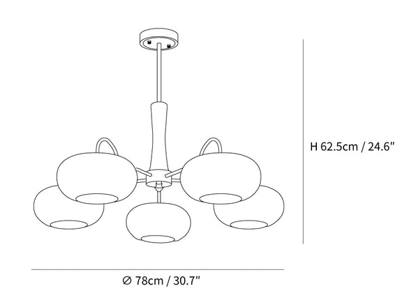 5 lamppua Koko: Halkaisija 78 cm x K 62,5 cm / ∅ 30,7″ x K 24,6″
