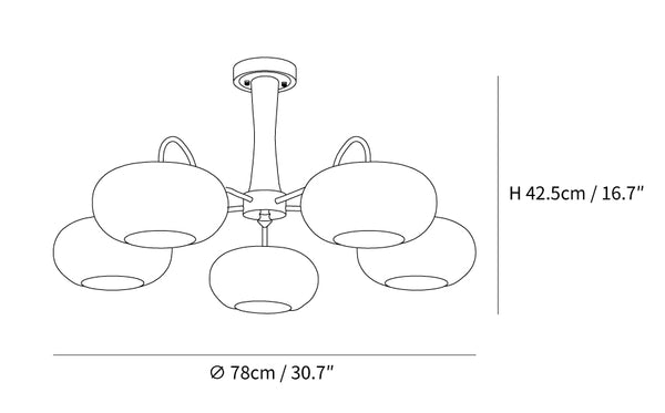 5 lamppua Koko: Halkaisija 78 cm x K 42,5 cm / ∅ 30,7″ x K 16,7″