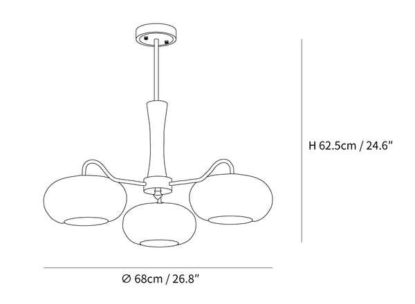3 lamppua Koko: Halkaisija 68cm x K 42,5cm / ∅ 26,8″ x K 16,7″