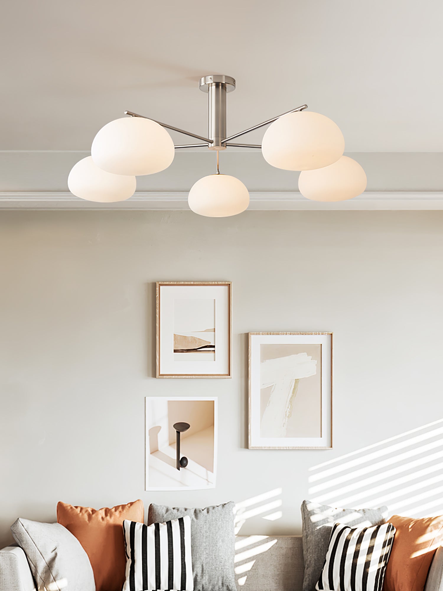 Briette-kattokruunu on tyylikäs ilmaisukappale, joka on suunniteltu lisäämään hienostuneisuutta mihin tahansa sisustukseen. Sen 60-luvun inspiroima tyyli sisältää houkuttelevan ristikehyksen, joka on koristeltu kiiltävällä kullalla ja valkoisilla lasipalloilla, mikä luo ajattoman tyylikkään ilmeen. Lisää tilaan ajatonta glamouria Briette-kattokruunulla.