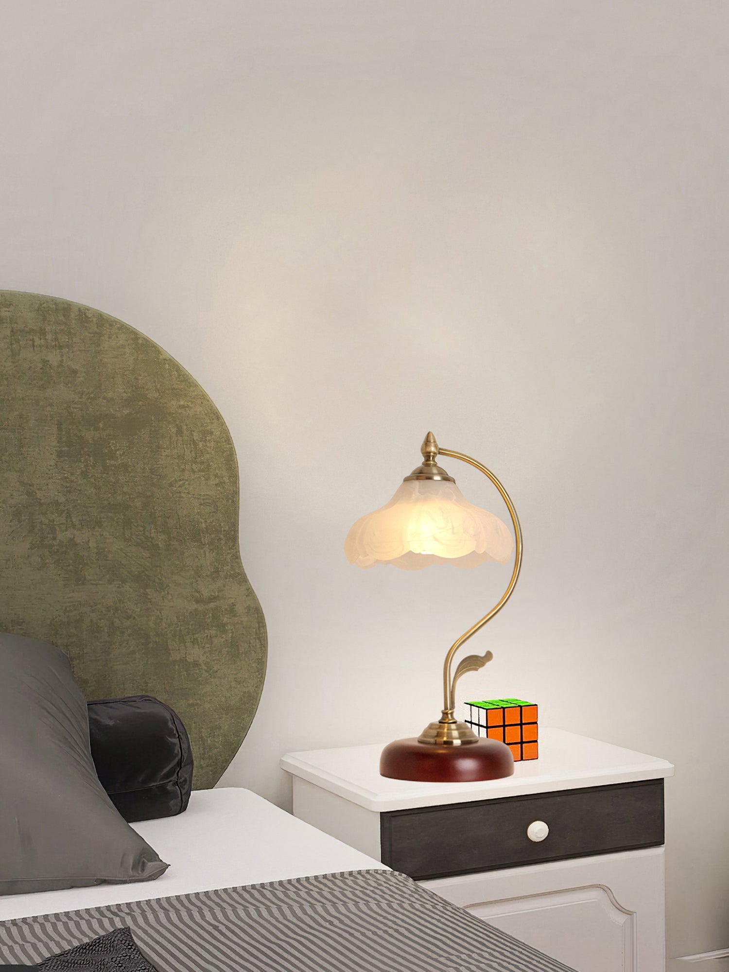 Brown Dome -pöytävalaisimen keskipiste on sen kiehtova lasivarjostin, jota koristavat monimutkaiset kuviot, jotka luovat lumoavan valon ja varjon leikin. Läpinäkyvän lasin ansiosta pehmeä, lämmin hehku valaisee ympäristöäsi luoden kodikkaan ja kutsuvan ilmapiirin.