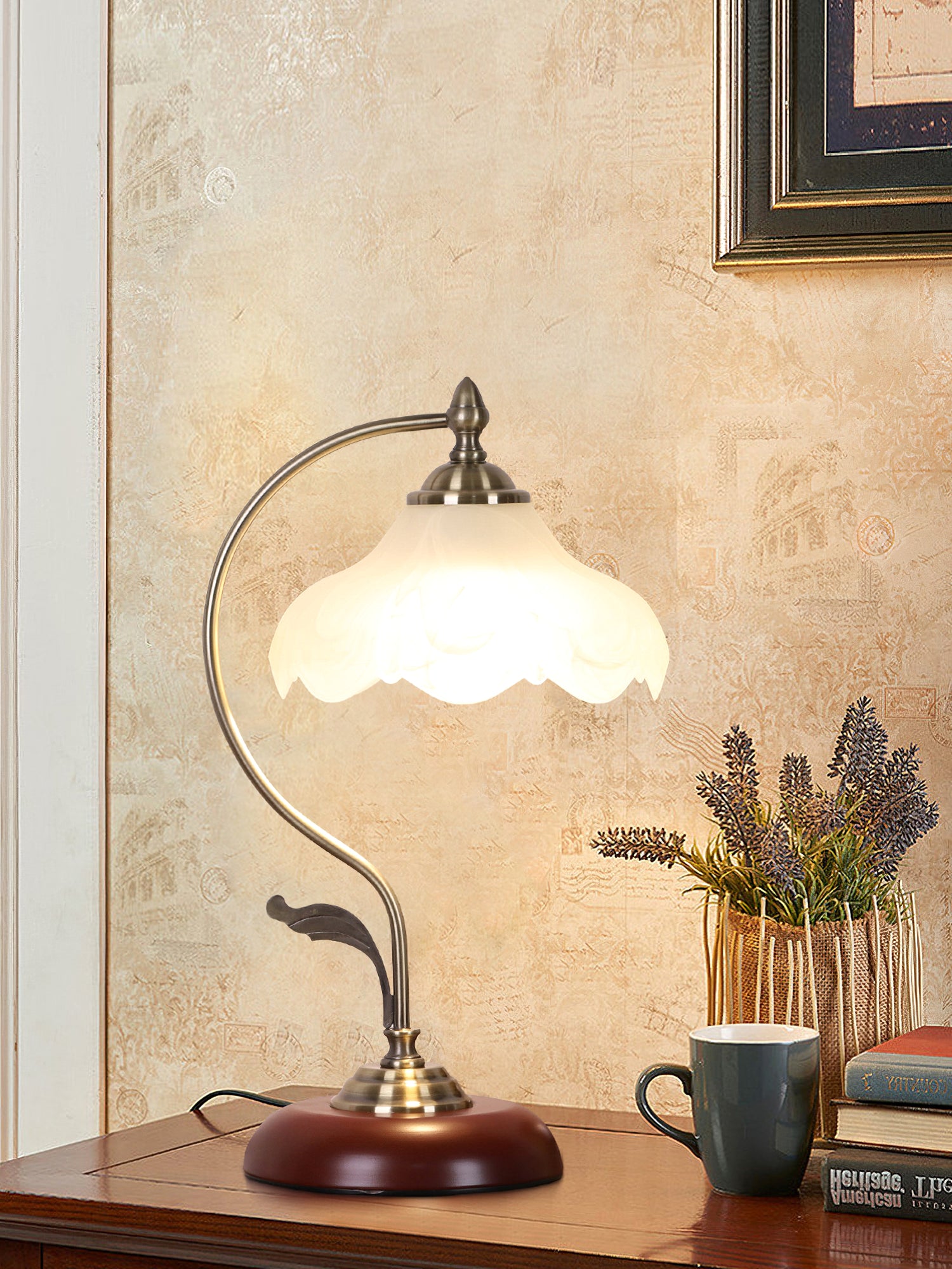 Valaisimen tukeva metalli- ja puurakenne takaa kestävyyden ja vakauden, joten se on luotettava kumppani vuosiksi eteenpäin. Pohjan täyteläinen ruskea sävy lisää ripauksen lämpöä, kun taas kultainen runko lisää ripauksen glamouria, mikä tekee siitä monipuolisen kappaleen, joka sopii eri sisustustyyleihin.