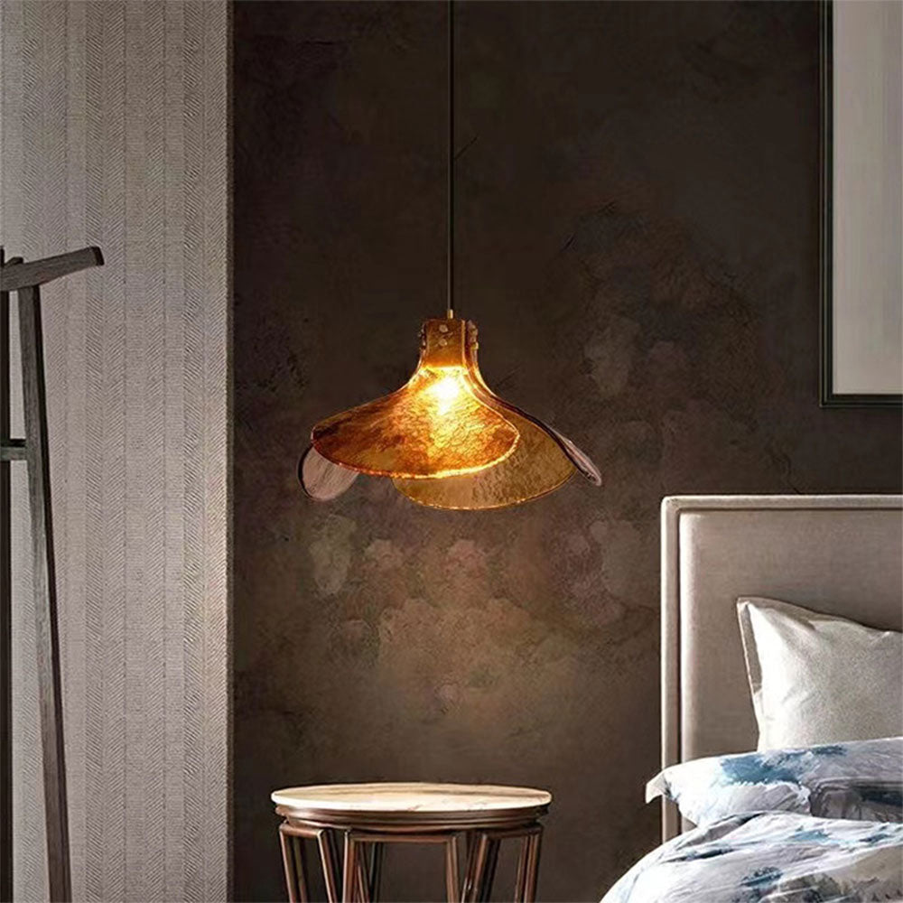 Retro käsinpuhallettu meripihkalasiriippuvalaisin