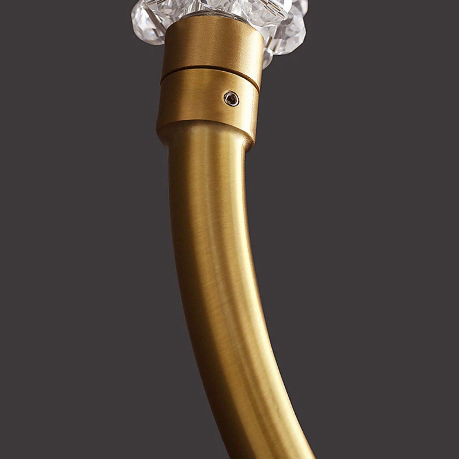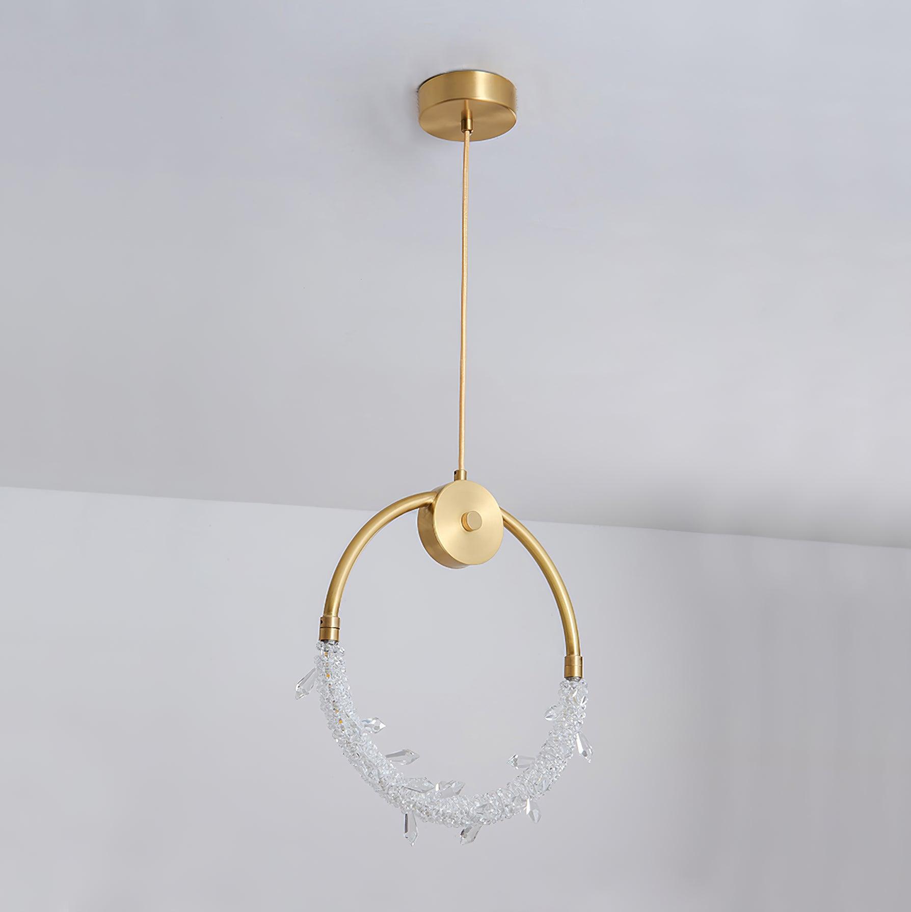 Tämä upea kristalliriippuvalaisin on kullanvärinen. Runko on valmistettu raudasta, jossa on kirkkaanväriset kristallihelmi. LED-lamput on integroitu runkoon. Asenna pari riipuksia eteiseen tai kolme keittiösaarekkeen päälle luodaksesi yhtenäisen ilmeen.