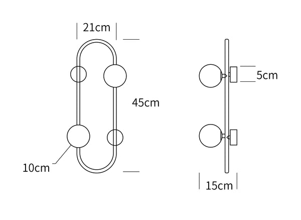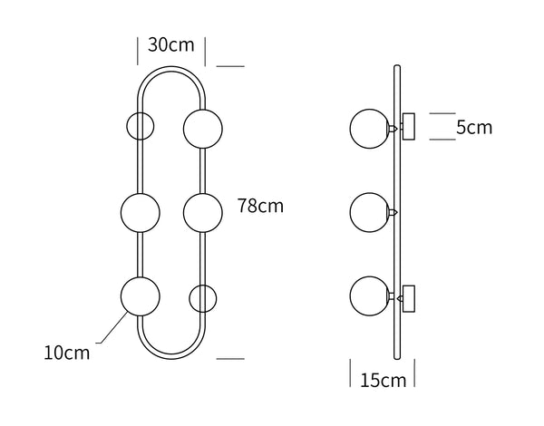 Lasista maapallon lampunvarjostuksista ja metallisista kannakkeista valmistettu tyylikäs seinävalaisin on yksinkertainen mutta tyylikäs. Se omistaa geometrisesti pitkänomaisen ripustustangon kimaltelevasta kullasta. Tämä viehättävä seinävalaisin valaisee kotisi modernilla tyylillä. Täydellinen kaikkiin tilaisuuksiin.