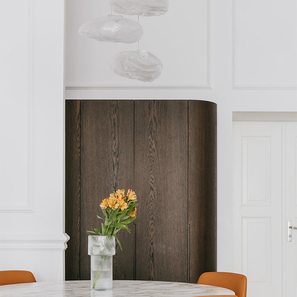 - Riippuvalaisimen viehätys piilee sen yksinkertaisessa mutta sirossa muotoilussa, jolle on ominaista nestemäinen lasimuoto, joka huokuu hillittyä eleganssia. Lasin huolellinen kaarevuus muodostaa silmiinpistävän siluetin, jonka ansiosta se voi parantaa vaivattomasti minkä tahansa huoneen estetiikkaa.