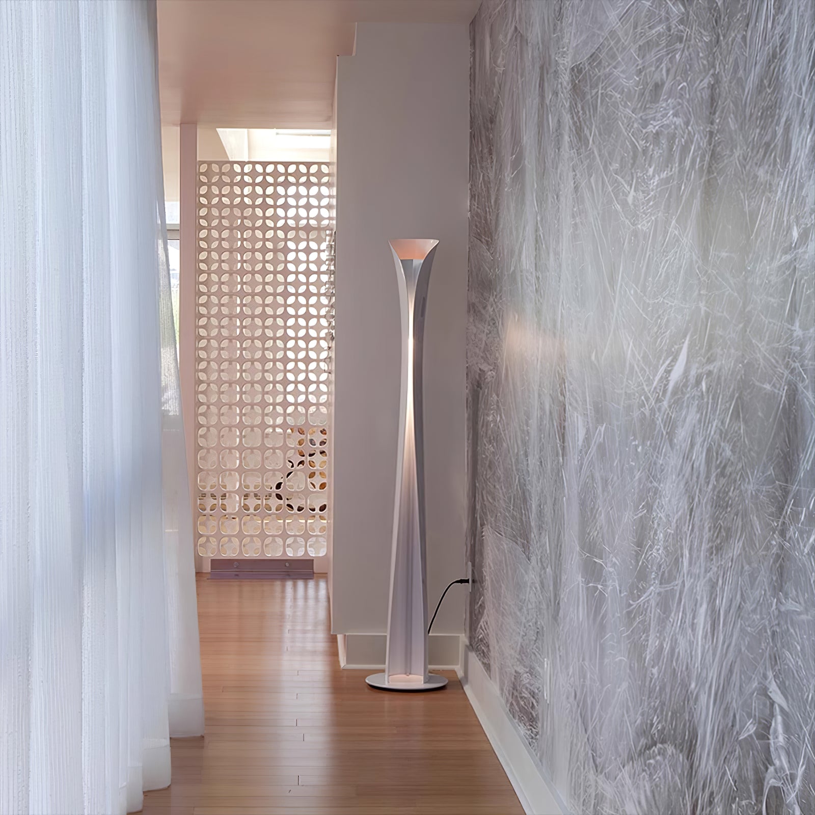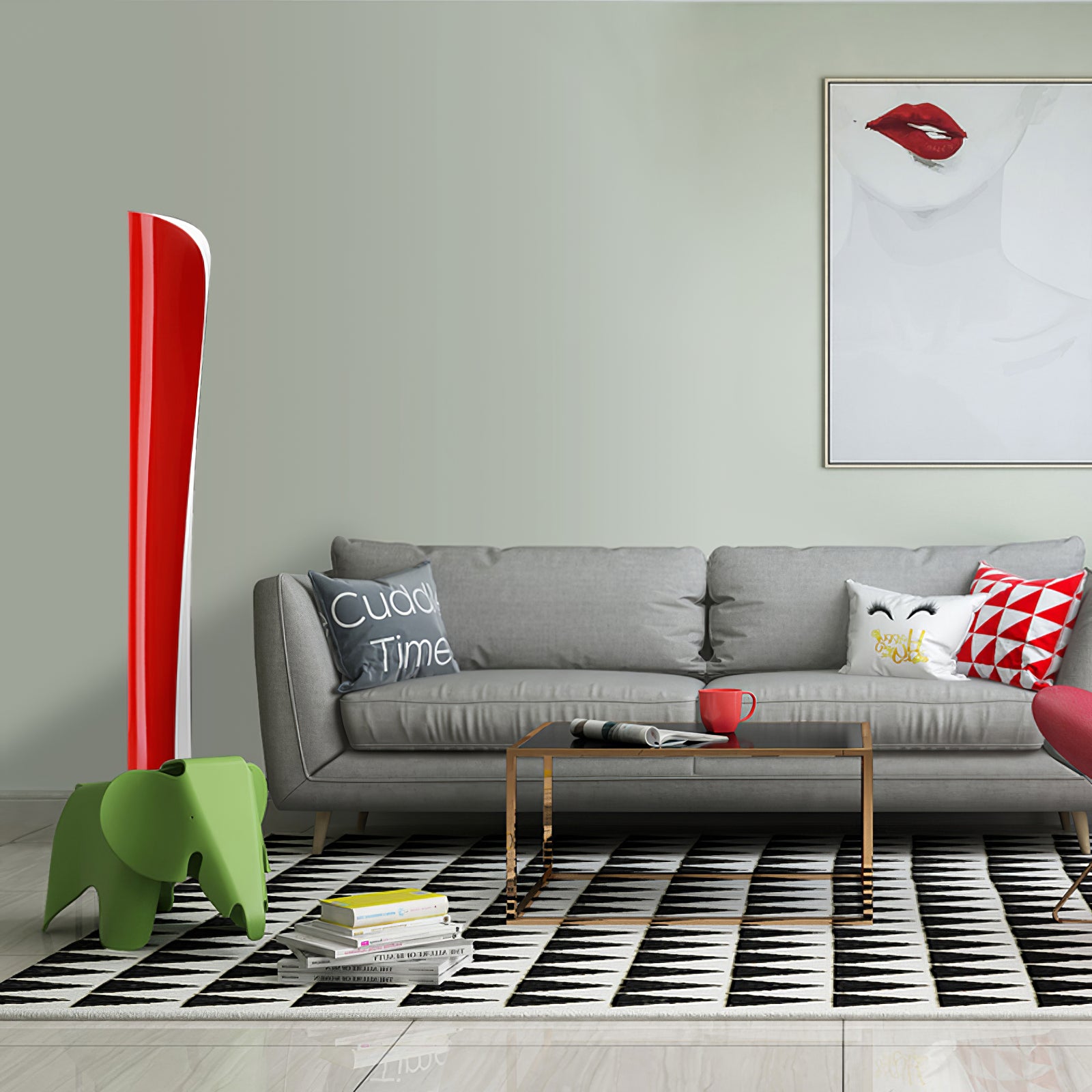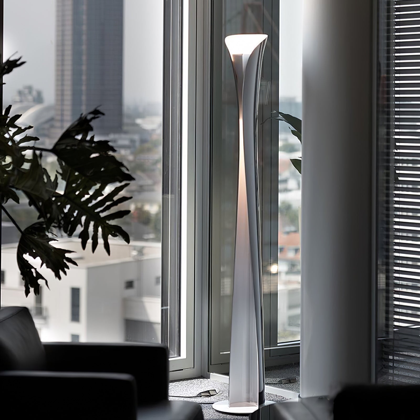 Cadmo koostuu yhdestä alumiinilevystä. Lattiavalaisin päästää pehmeää epäsuoraa valoa ylöspäin yhdessä hajavalon kanssa pystysuoraa aukkoa pitkin. Ylempi epäsuora valosäteily sekä edestä tuleva hajavalo syntyy halogeenivalonlähteistä, joita ohjataan erikseen.