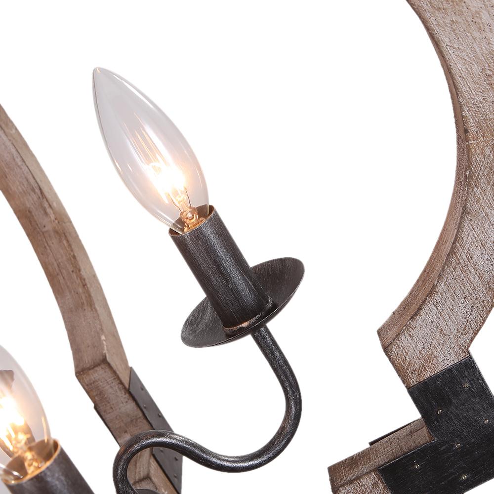 Tässä maalaistalon tunnelmaa täynnä olevassa lyhdyn geometrisessa kattokruunussa on klassinen nelikantinen profiili, jota korostetaan maalaismaisella mustalla metallilla, joka lisää ilmettä. Neljä E12/E14-polttimoa (ei sisälly toimitukseen) asettuvat kynttelikkömäisiin kannakkeisiin avoimen rungon sisällä luomaan kimaltelevaa hehkua. Pituussäädettävä ketju ripustaa koko nelikantikruunun yläpuolella olevasta kaltevaan kattoon sopivasta katoksesta täydentääkseen mallia. Tämä kynttilätyylinen puinen nelikantikruunu toimii täydellisesti antamaan keittiösaarellesi, ruokapöytään, eteiseen, eteiseen tai mihin tahansa olohuoneeseen erottuva keskipiste.Detail