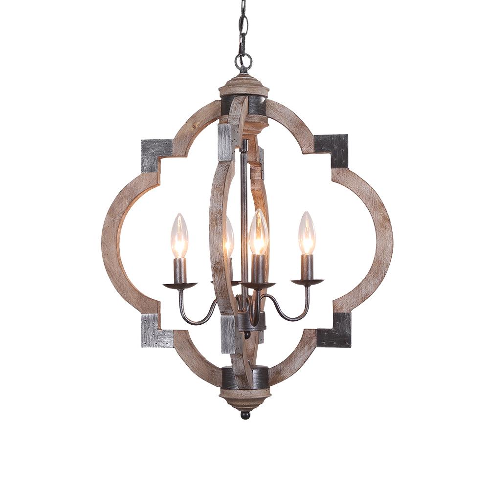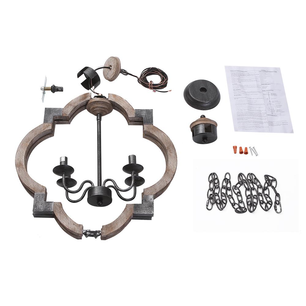 Neljä valoa • Quatrefoil-muotoilu • Puu + metalli • E12/E14 kynttelikköpolttimot (ei sisälly) • Kiinteä • UL-listattu/CE-listattu