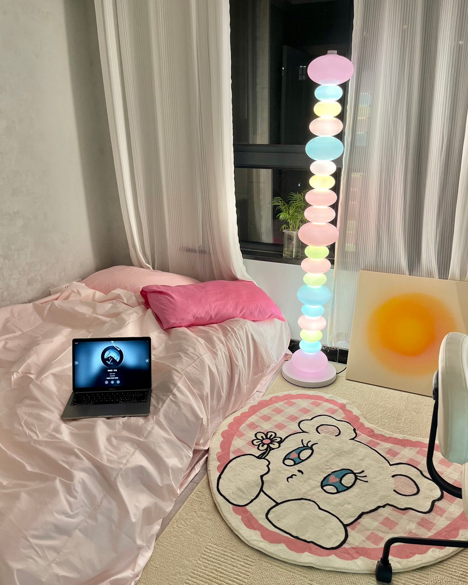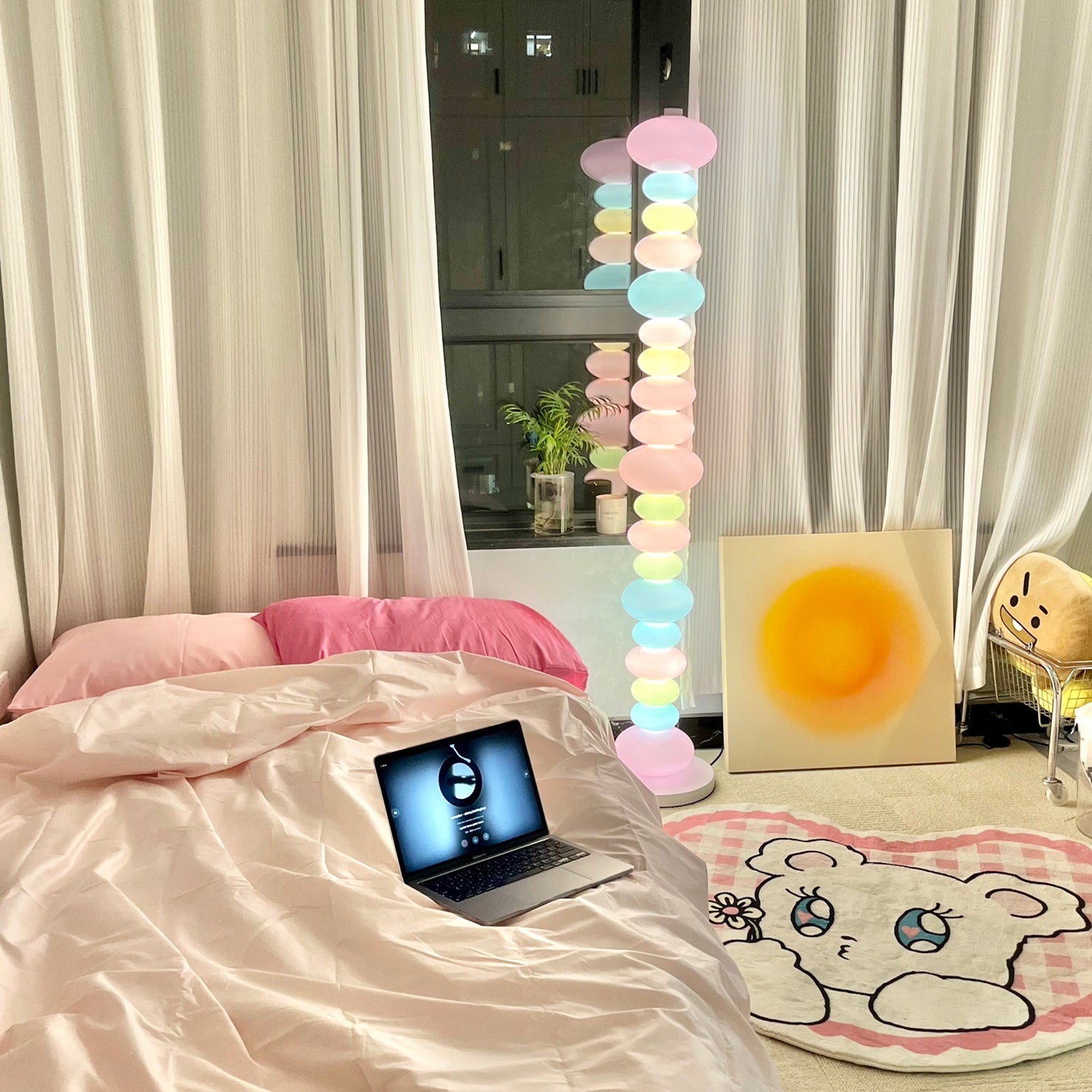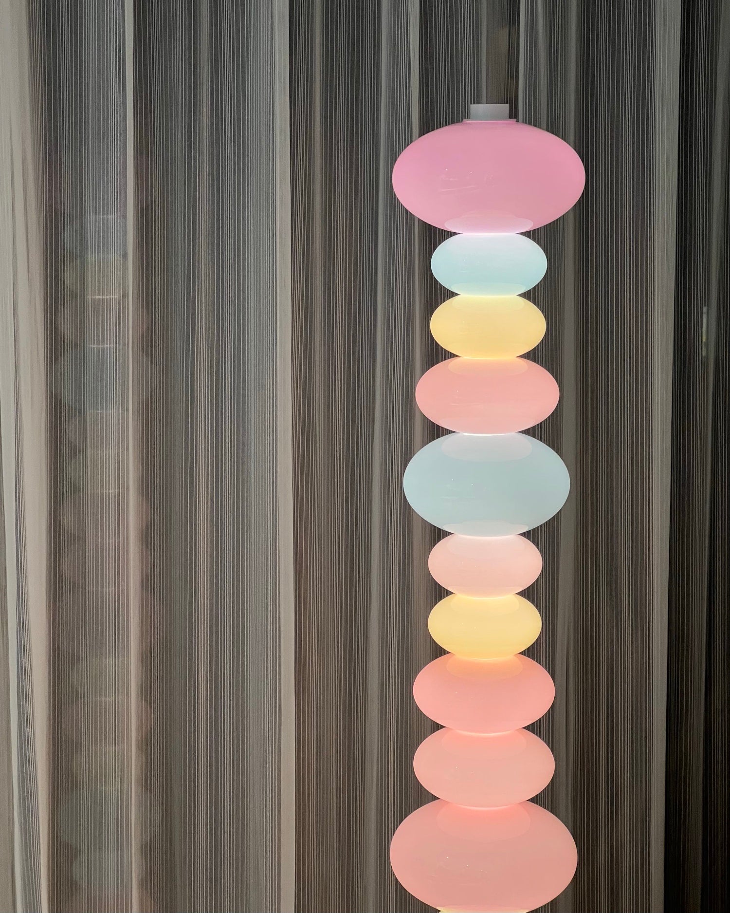 Värikas ja kaunis karkkilattiavalaisin, siinä on pyöreä ja herkkä lasi ja koko on taitavasti yhdistetty kauniiksi ja jatkuvaksi linjatyöksi, joka on yksinkertaisesti kaunista!