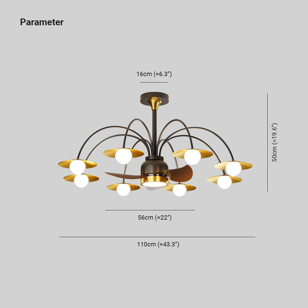 Carins kattotuuletin valolla, alumiinilla ja metallilla, 43,3"