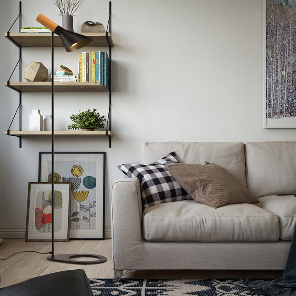 Carins Modern Minimalist metalli/puinen lattiavalaisin, musta/valkoinen