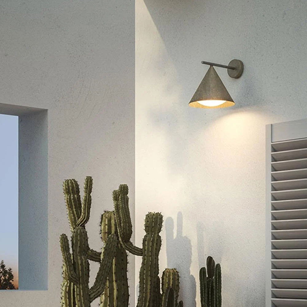 Carinsin moderni minimalistinen kartiometallinen vedenpitävä ulkoseinävalaisin, musta/kulta