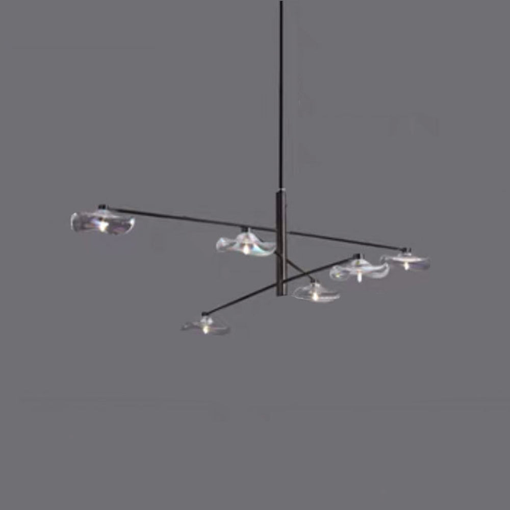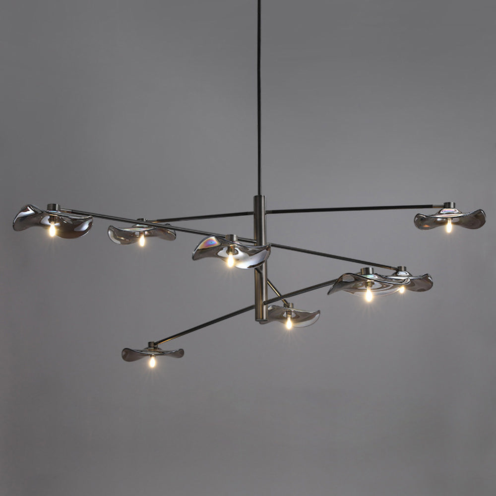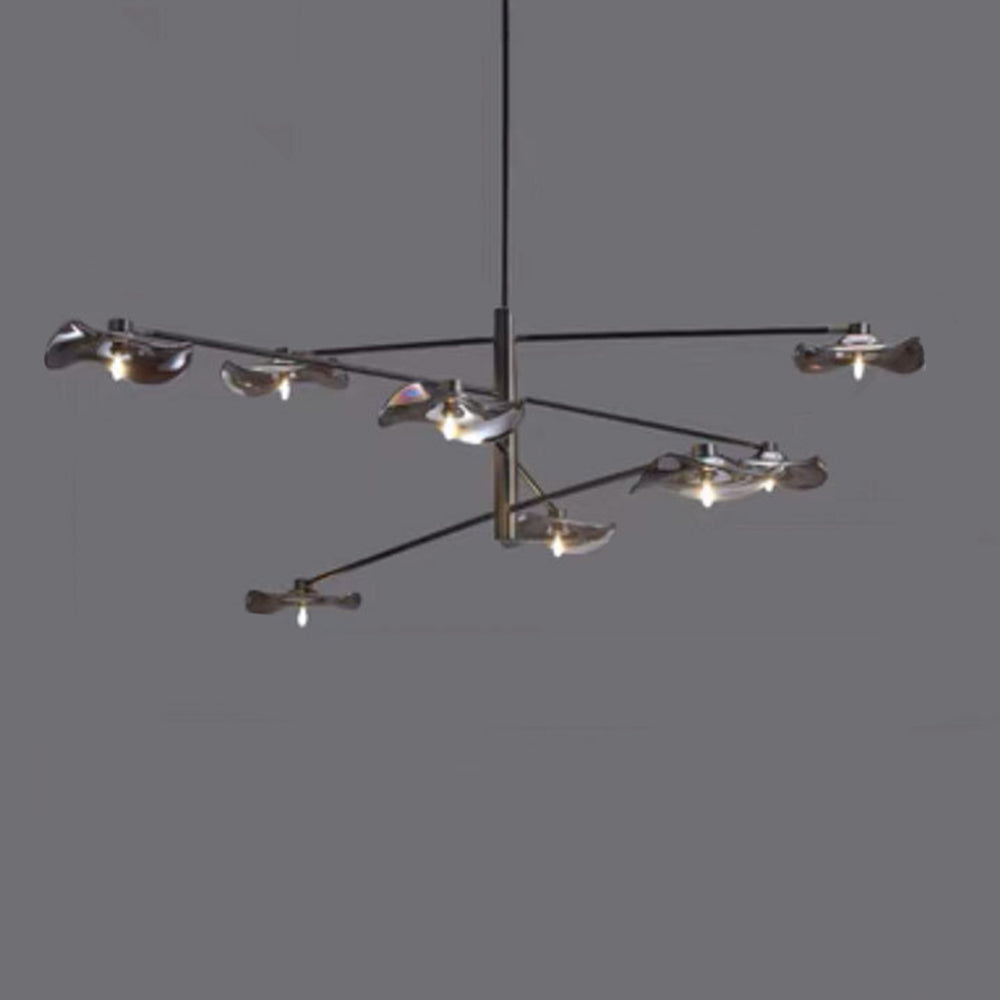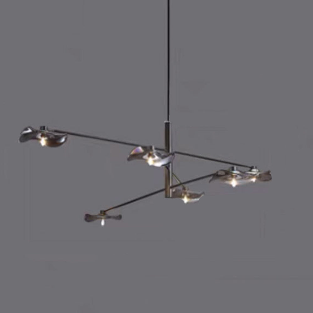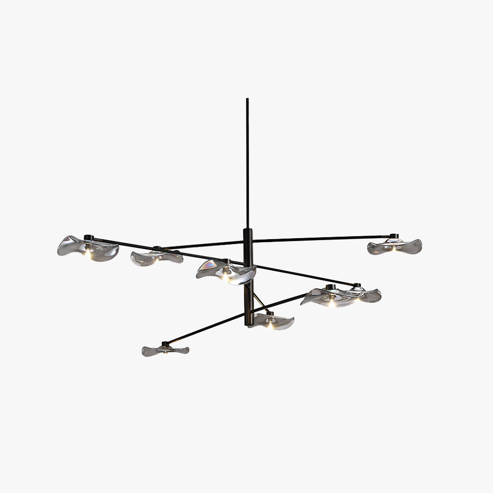 Haaraan suunnitellussa riippuvalaisimessa on lootuksenlehden muotoinen varjostin ja useita lampunpäitä, jotka lisäävät kerroksia ja muotoilun tuntua säilyttäen samalla yksinkertaisuuden.