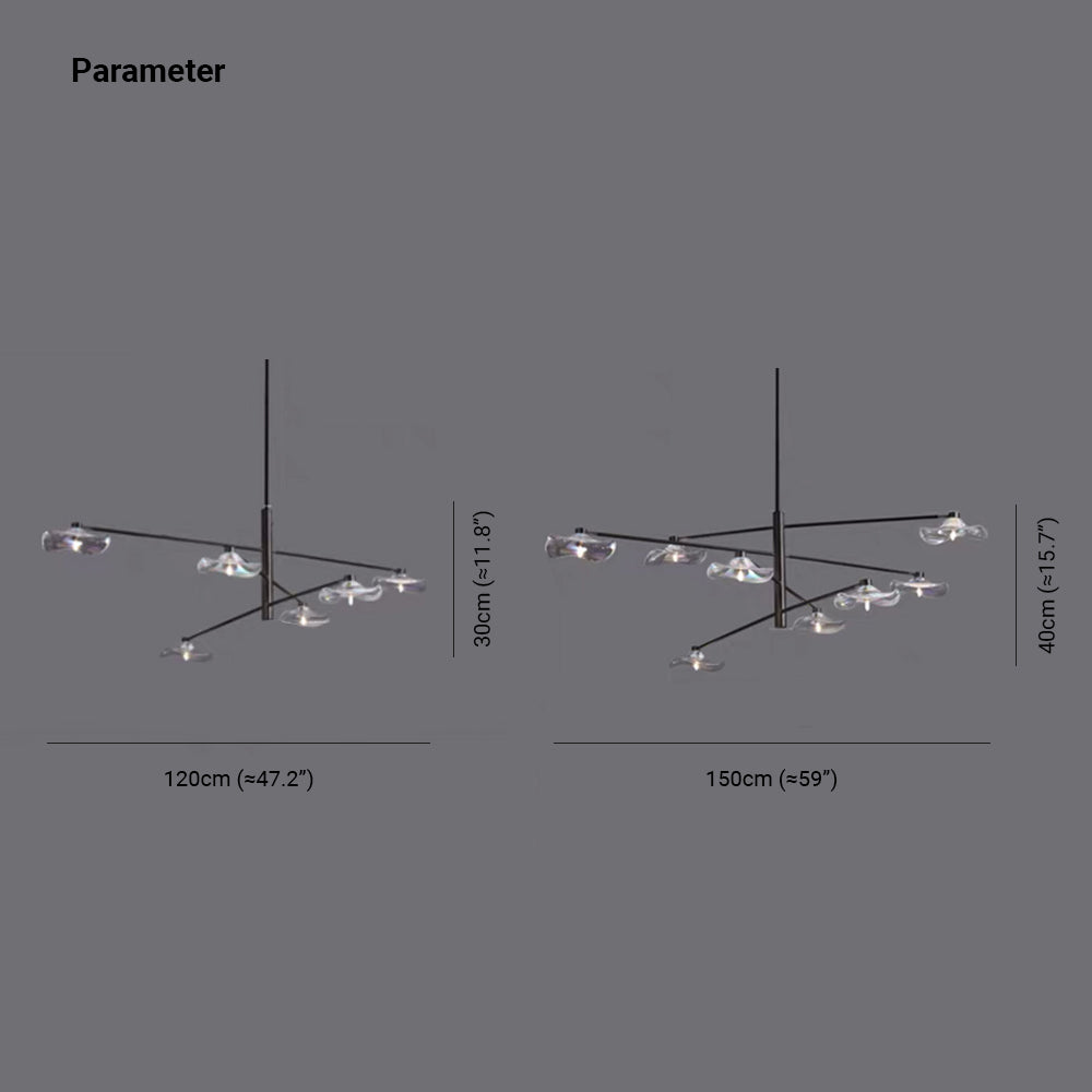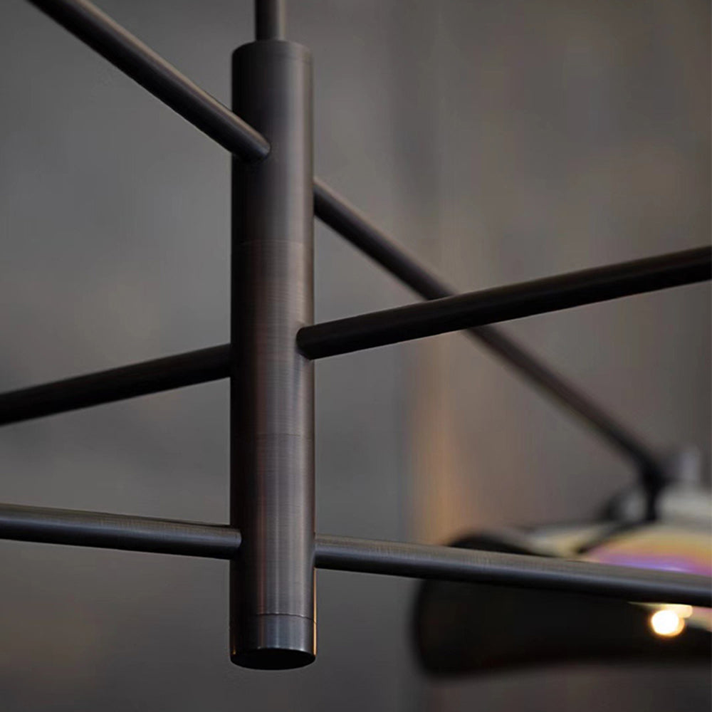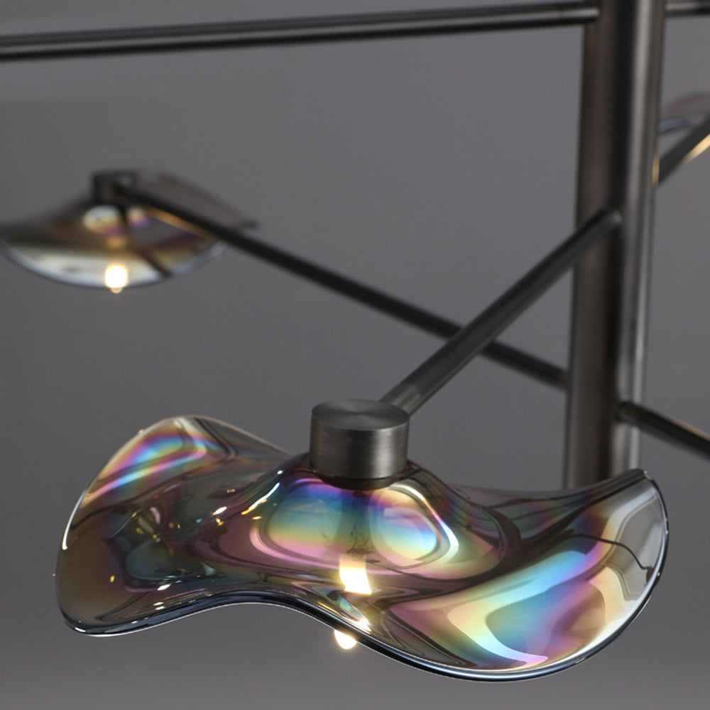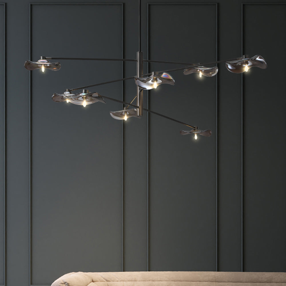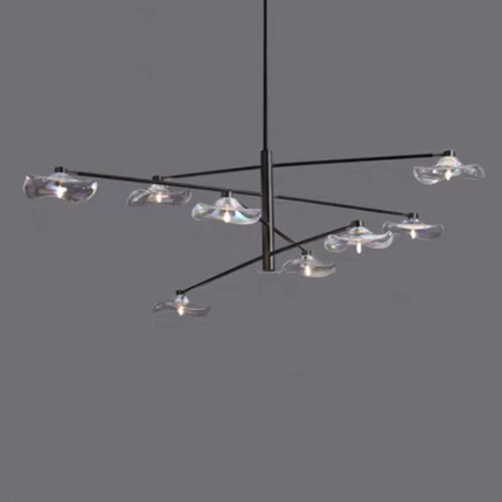Haaraan suunnitellussa riippuvalaisimessa on lootuksenlehden muotoinen varjostin ja useita lampunpäitä, jotka lisäävät kerroksia ja muotoilun tuntua säilyttäen samalla yksinkertaisuuden.
