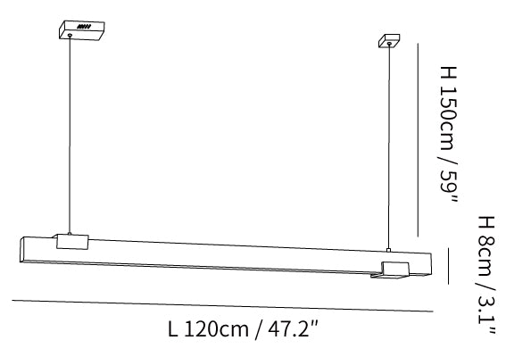 59″ Säädettävä ripustuskorkeuskaapeli. Voidaan pidentää pyynnöstä.