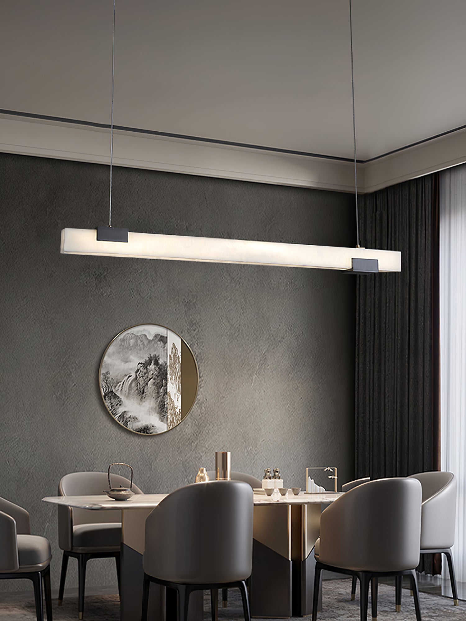 Cary Alabaster -riippuvalaisin sopii täydellisesti mihin tahansa ruokasaliin. Tämä tyylikäs, pitkä kattovalaisin säteilee pehmeää valoa, joka on täydellinen mihin tahansa suureen kokoontumiseen tai intiimiin illalliseen. Alabasterista valmistetun valaisimen ainutlaatuinen ja selkeä muotoilu lisää lämpimän ja kutsuvan tunnelman mihin tahansa tilaan.