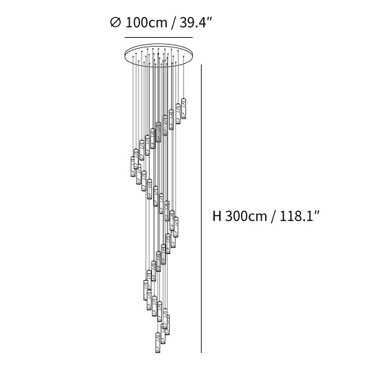 12 Päät Pyöreä kuomu Koko: Halkaisija 40 cm x K 200 cm / ∅ 15,7" x K 78,7" 16 Päät Pyöreä kuomu Koko: Halkaisija 50 cm x K 200 cm / ∅ 19,7″ x K 78,7″ 18 Päät Pyöreä kuomu Koko: Halkaisija 60cm x K 200cm / ∅ 23,6″ x K 78,7″ 24 Päät Pyöreä kuomu Koko: Halkaisija 80cm x K 250cm / ∅ 31,5″ x K 98,4″ 32 Päät Pyöreä kuomu Koko: Halkaisija 100 cm x K 300 cm / ∅ 39,4″ x K 118,1″ Tiedot Materiaali: alabasteri, messinki. Valonlähde: Integroitu LED (LED-valot on täysin sisäänrakennettu valaisimeen, eikä niitä voi vaihtaa). Kelvin-alue: lämmin valo (3000K), neutraali valo (4000K), viileä valo (6000K). Jännite: AC 110-240 V. Rungon viimeistelyt: Messinki. Shade Finish: White. Asennus: kattoon. Kosteudenkestävyys: IP 20 Kosteusluokitus käytettäväksi kylpyhuoneissa, keittiöissä ja katetuissa ulkotiloissa. Ympäristö: Sisätiloissa Johdot: kiinteä. Ohjaus: Yhteensopiva tavallisen seinäkytkimen kanssa (ei mukana). Kytkin: Tämä kytkin pitää kytkeä ulkoiseen seinävalokytkimeen, mahdollistaa hallitun sähkönsyötön. 59″ Säädettävä riippukorkeuskaapeli, jota voidaan pidentää tarpeen mukaan. Certification: UL, ETL ja CE, SAA luettelossa.