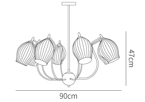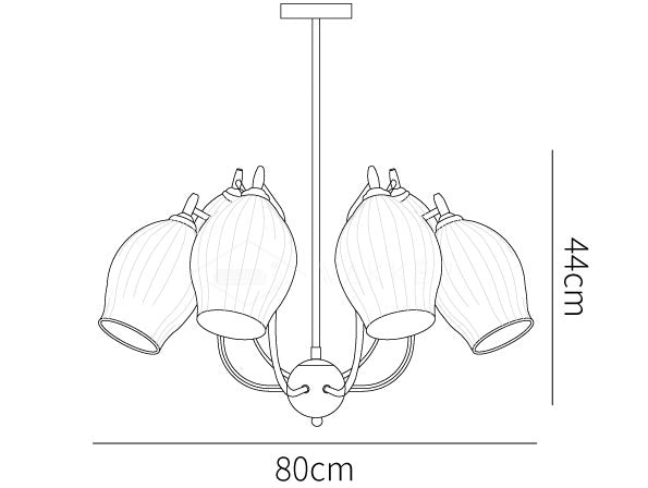 Luo mukautettu valaistus Sculptural Glass 5-light Ribbed -kattokruunullamme. Sen lämmin hehku ja hienot uurretut yksityiskohdat ovat juuri niitä asioita, jotka lisäävät valaisevaa juonittelua käytävällesi, eteiseen tai ruokailuhuoneeseen.