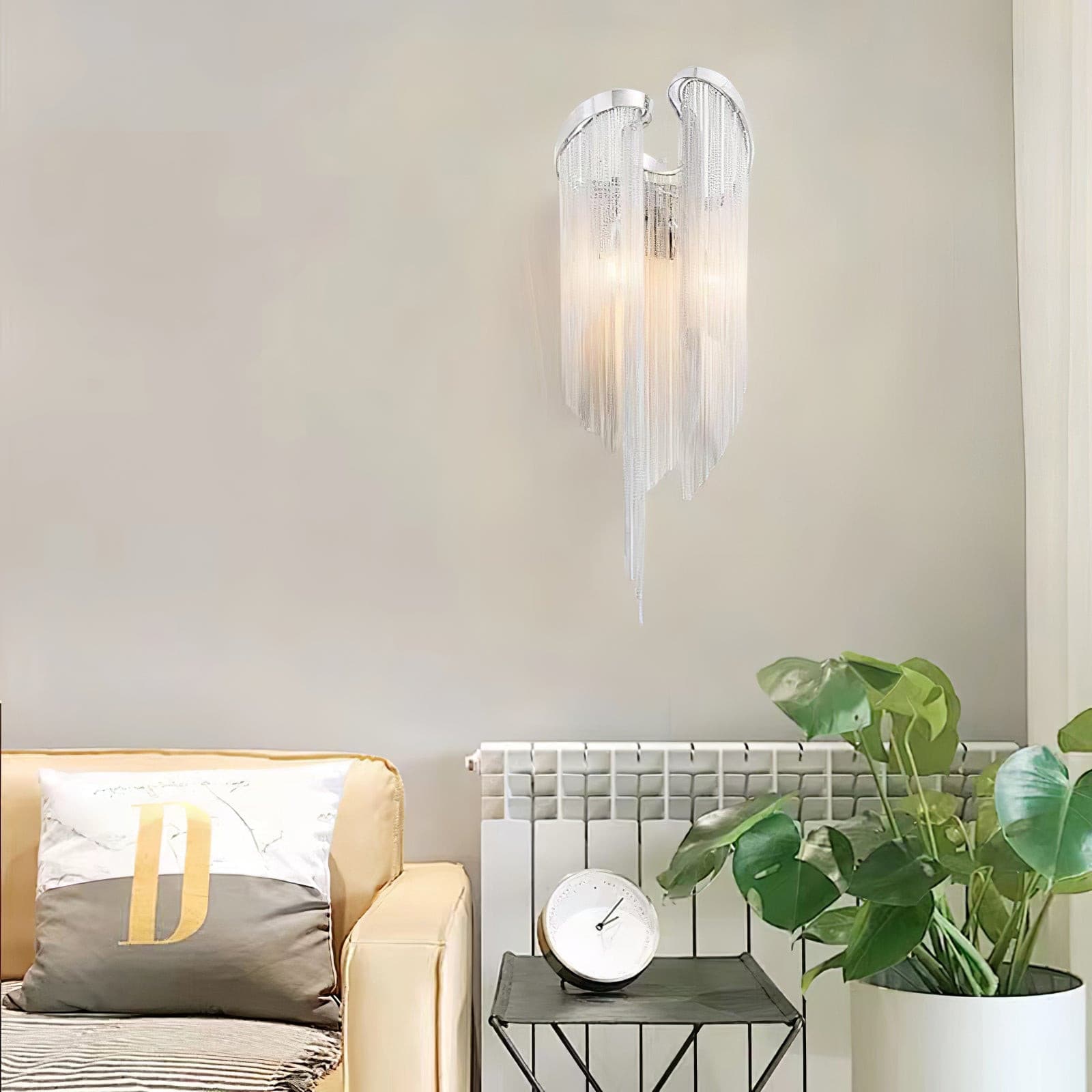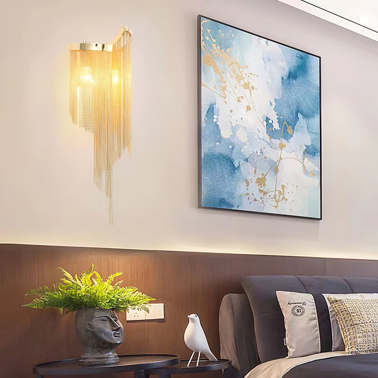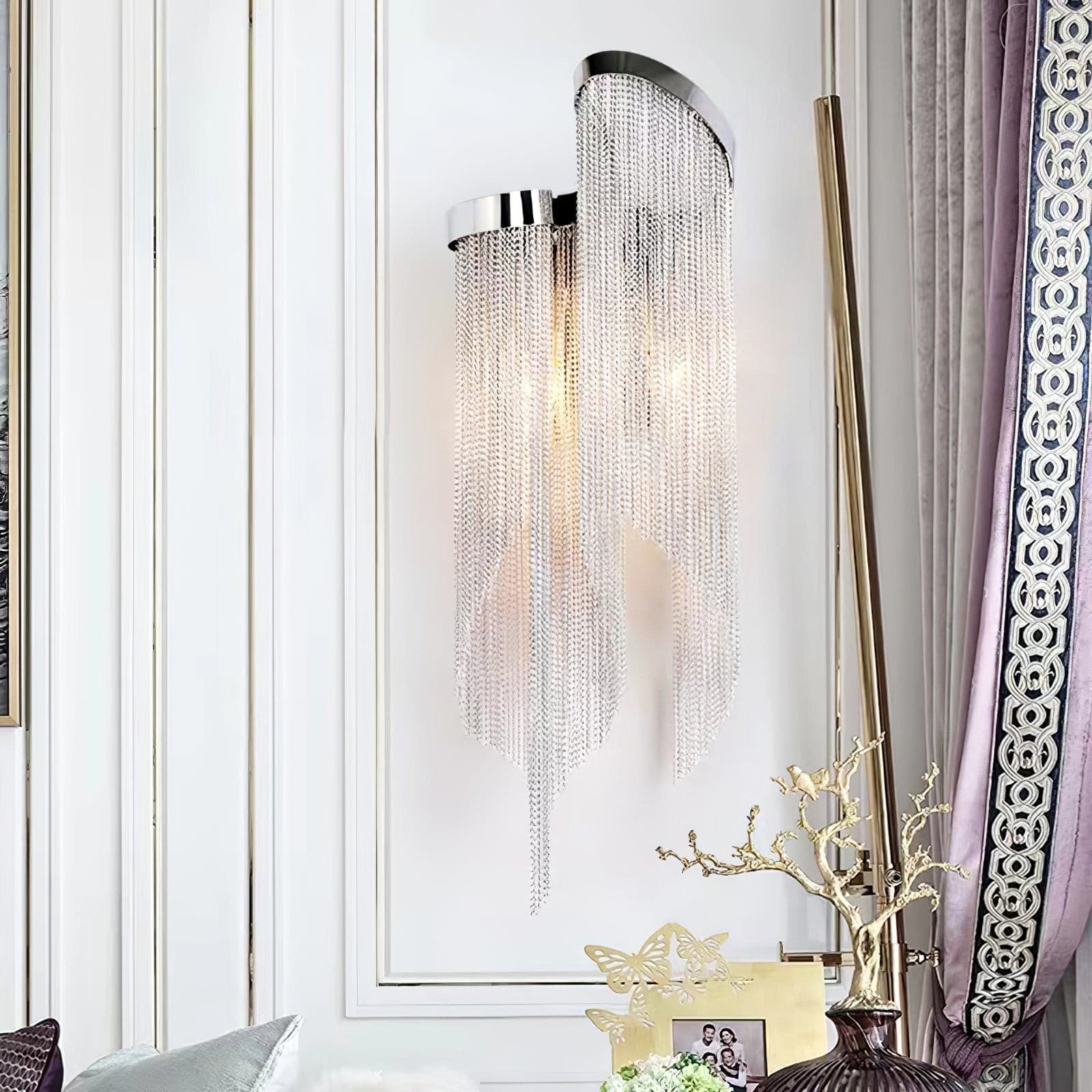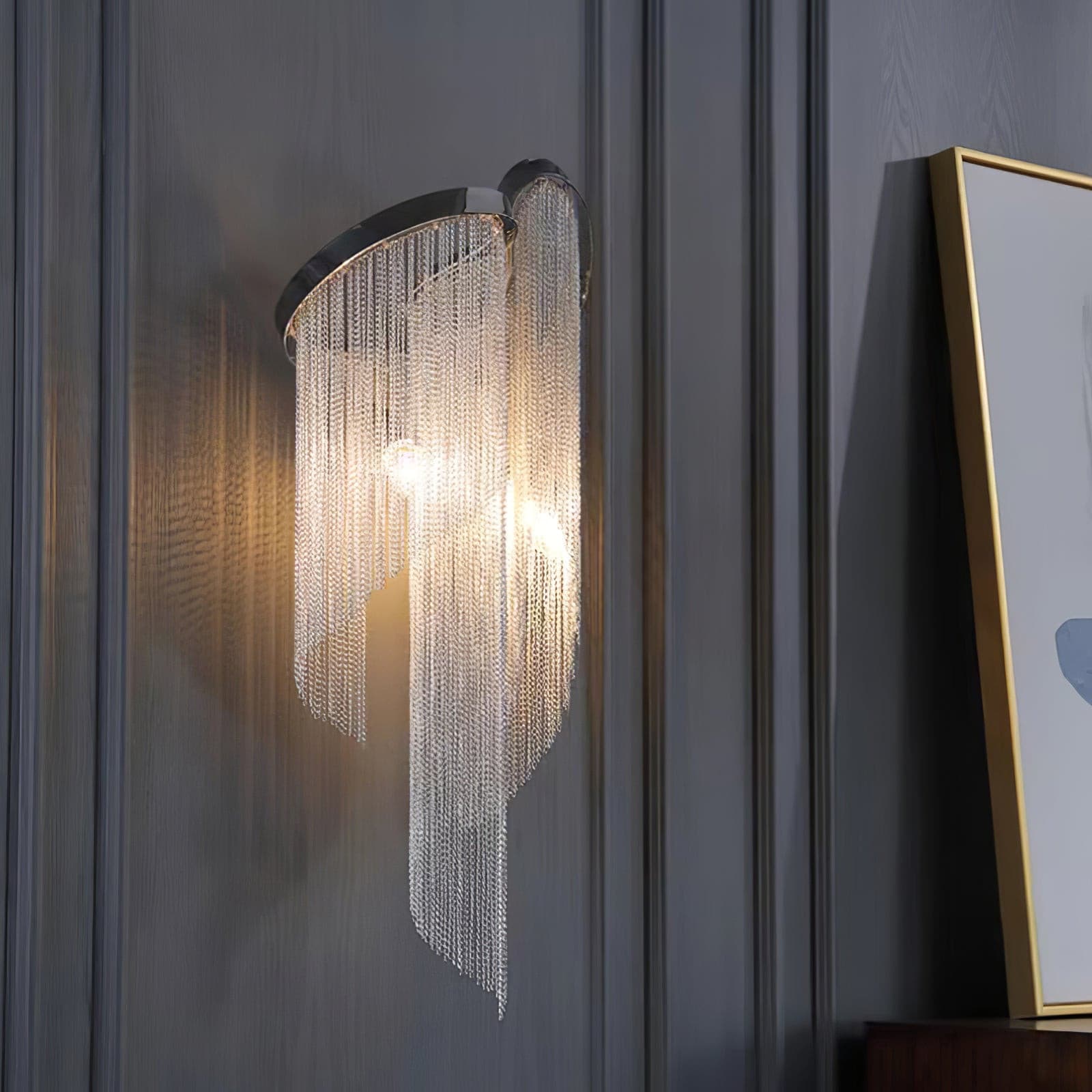 Lisää tilaan tyylikästä ja nykyaikaista ilmettä tällä ainutlaatuisella ketjutupsuvalaisimilla. Tällä erottuvalla kappaleella on moderni siluetti ja kaunis ketjutupsumuotoilu, joka sopii täydellisesti ylellisen ja katseenvangitsevan tunnelman luomiseen kaikkiin huoneisiin, olohuoneista ja ravintoloista makuuhuoneisiin ja hotelleihin.