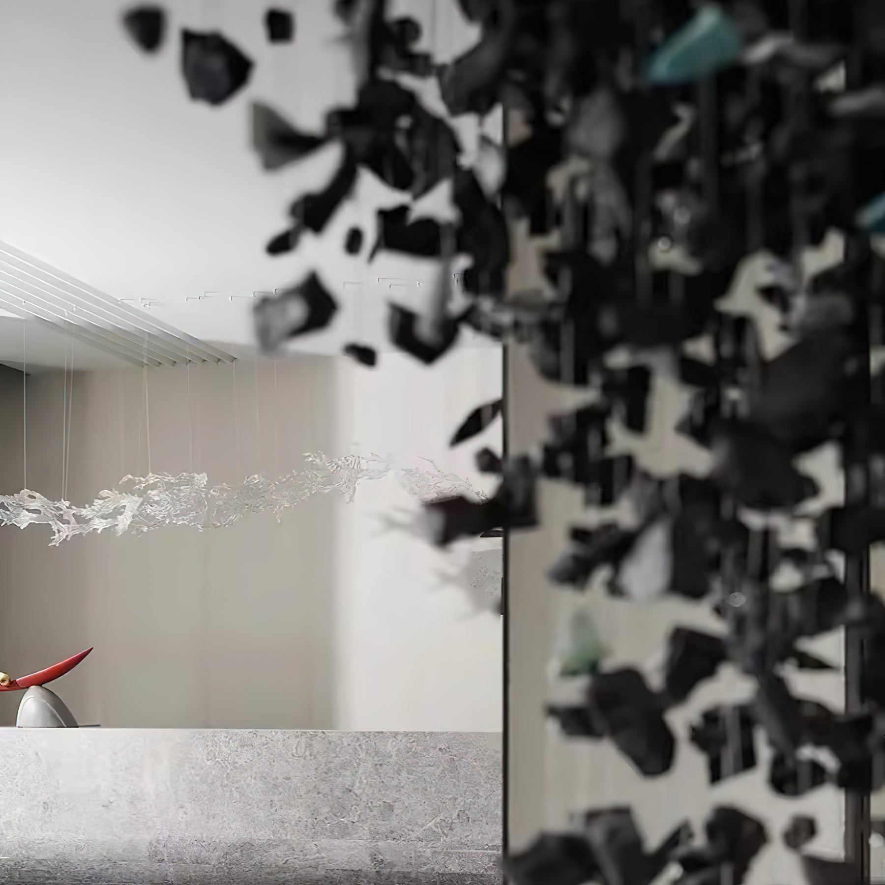 Yhdestä hiilenpalasta alkaen muodostuu viiva ja täytetään alue, joka ilmaisee ajatuksen, että kaikki universumissa liittyy toisiinsa. Hiilen käyttö, joka samanaikaisesti luo ja tuhoaa, tarkoittaa, että koko olemassaolo tiivistyy yhteen pisteeseen. Merkitys on selkeä ja erehtymätön.