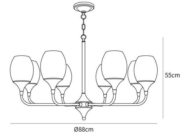 Tämä kattokruunu palauttaa mieleen kauniin menneisyyden tällä viehättävällä ja vain vähän draamaa herättävällä kynttilämaisella kattokruunulla. Kahdeksalla aaltoilevalla kädellä, jotka pitävät ylpeänä kirkkaat valot, on ikään kuin kuljettaisit jatkuvien debutanttijuhlien ja yhteiskunnallisten kokoontumisten maailmaan – vaikka todella isännöisit ystävällistä illallista tai lukisit suosikkiromaaniasi töiden jälkeen. Voit nauttia menneisyyden muistoista samalla kun nautit nykyajan kotisi yksinkertaisesta ylellisyydestä.