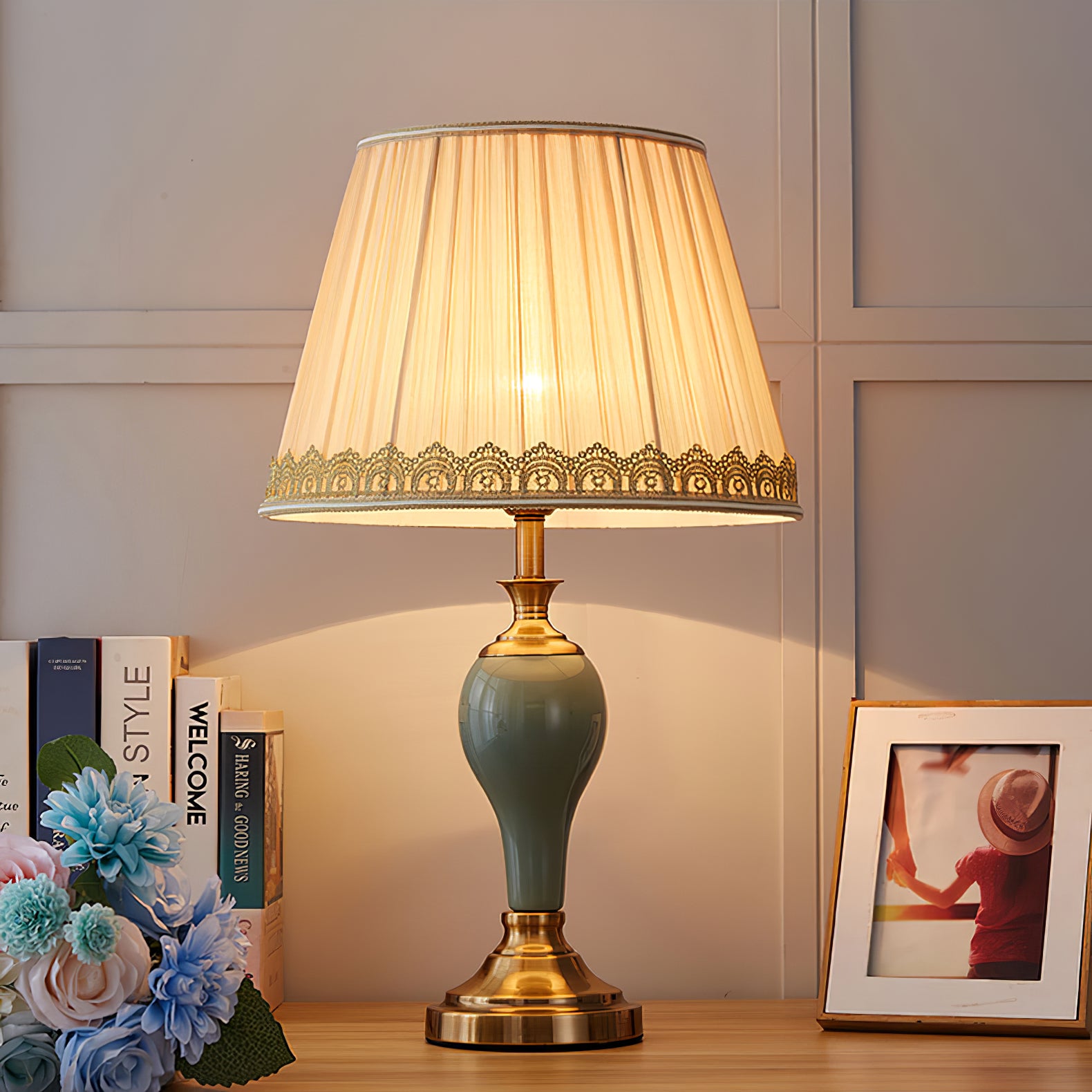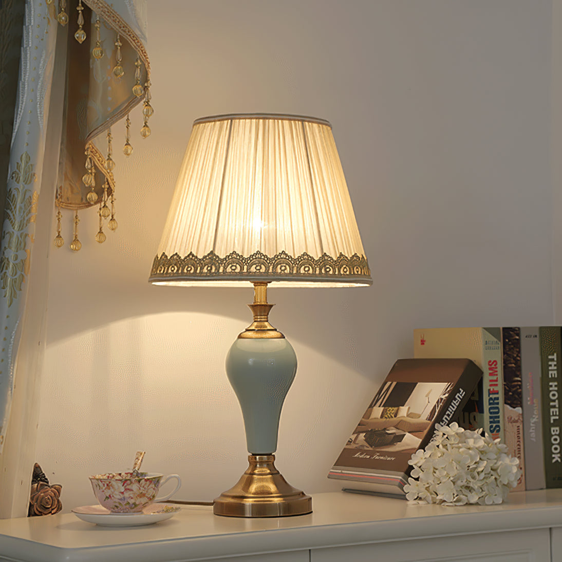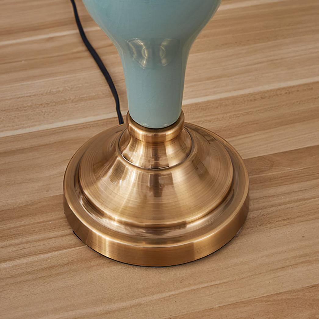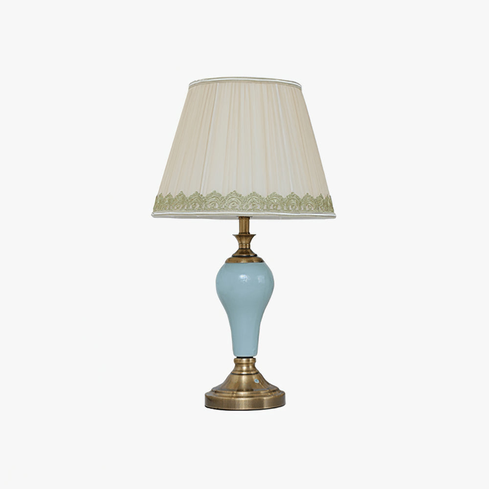 Tämä on sininen uusklassinen taidekankainen pöytävalaisin. Valaisin on huolella valmistettu, klassinen tunnelma, mutta se voidaan yhdistää moderniin sisustustyyliin, jossa on tyylikäs ja rauhallinen tunnelma. Se voidaan asentaa makuuhuoneeseen, työhuoneeseen, olohuoneeseen.