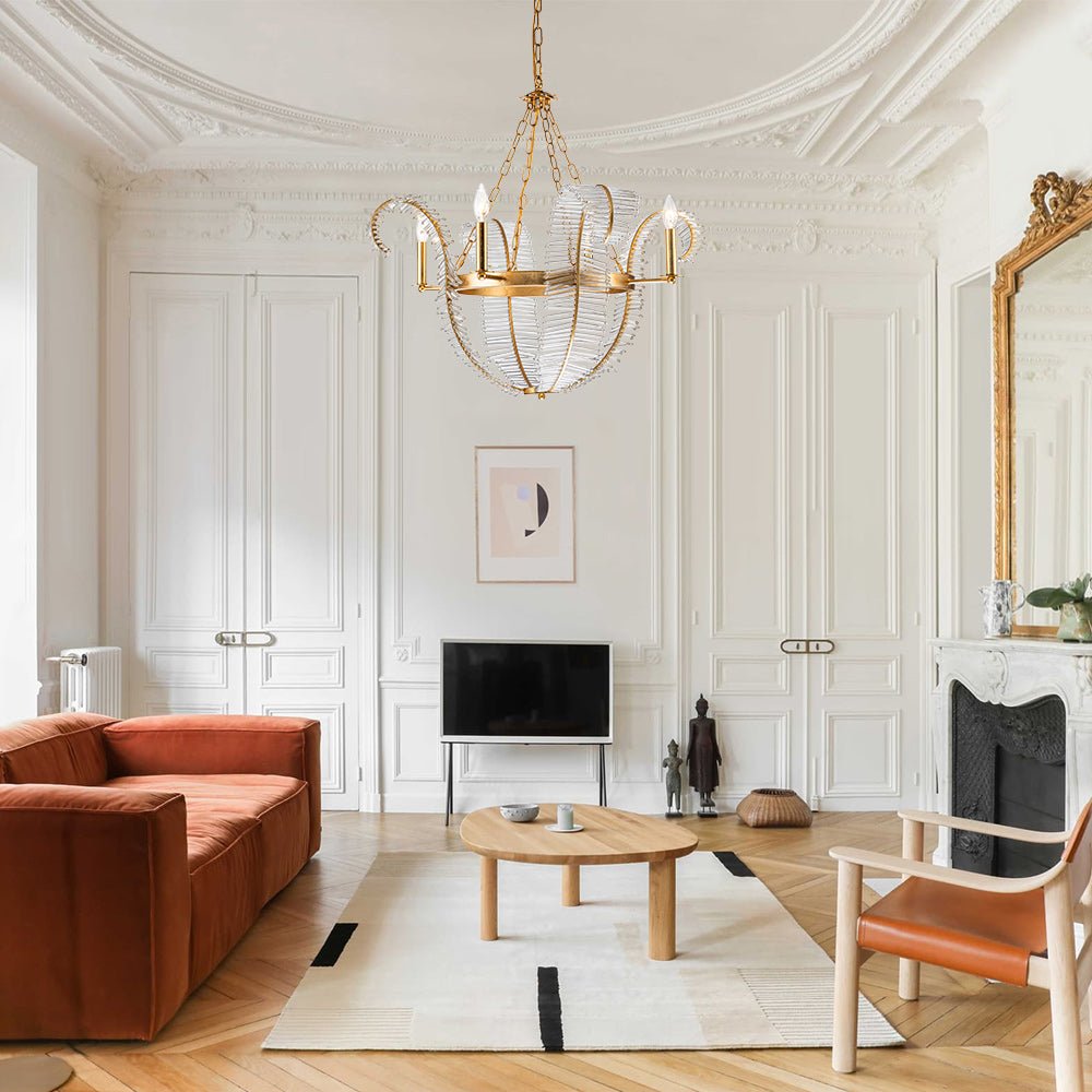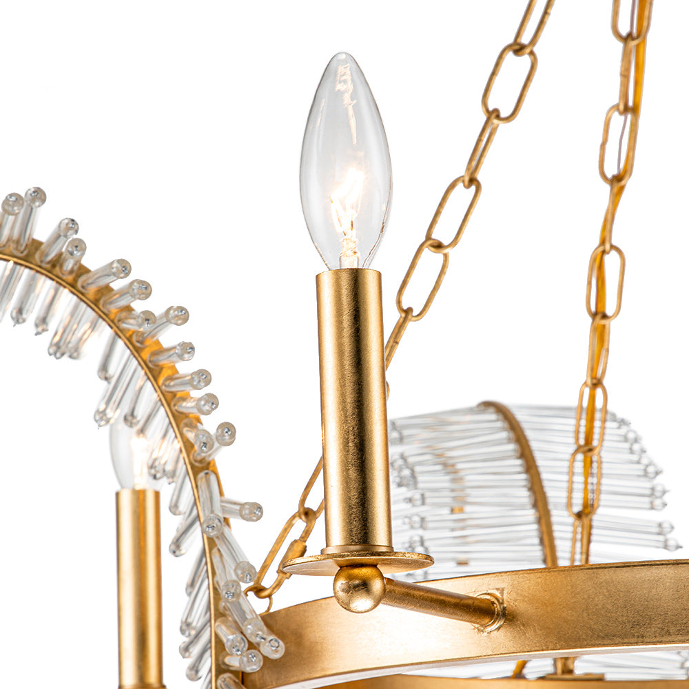 Tämä palmulehtikruunun inspiroima kukkakruunu esittelee metallisen kukkakukkien kehyksen, joka on koristeltu erittäin ohuilla lasikristalliputkilla. Neljä E12/E14 kynttelikköpolttimoa (ei sisällä) viimeistelevät tyylikkään antiikkityylin. Tämä kristallikukkakruunu on lehtikulta maalattu vintage messinkiä varten. Kun tämä kynttilätyylinen kukkakruunu on käynnistetty, se kimaltelee kuin tyylikäs hohtava lootus tehdäkseen vaikutuksen kaikkiin. Suosittelemme, että asetat tämän tyylikkään antiikkisen kristallikukkakruunun loistavaksi taideteokseksi, joka parantaa olohuoneesi, ruokailutilan, makuuhuoneen, eteisen, eteisen tai aulan makua.Tiedot