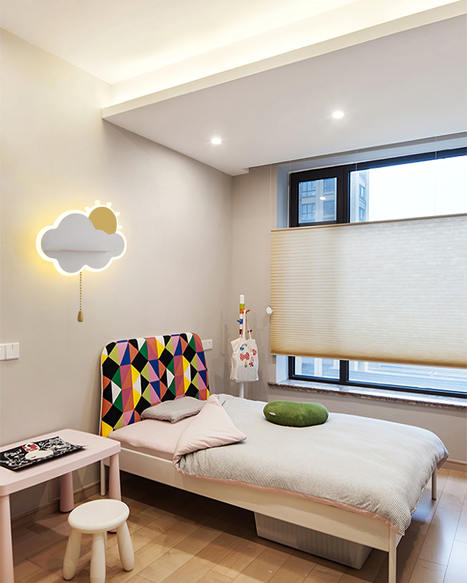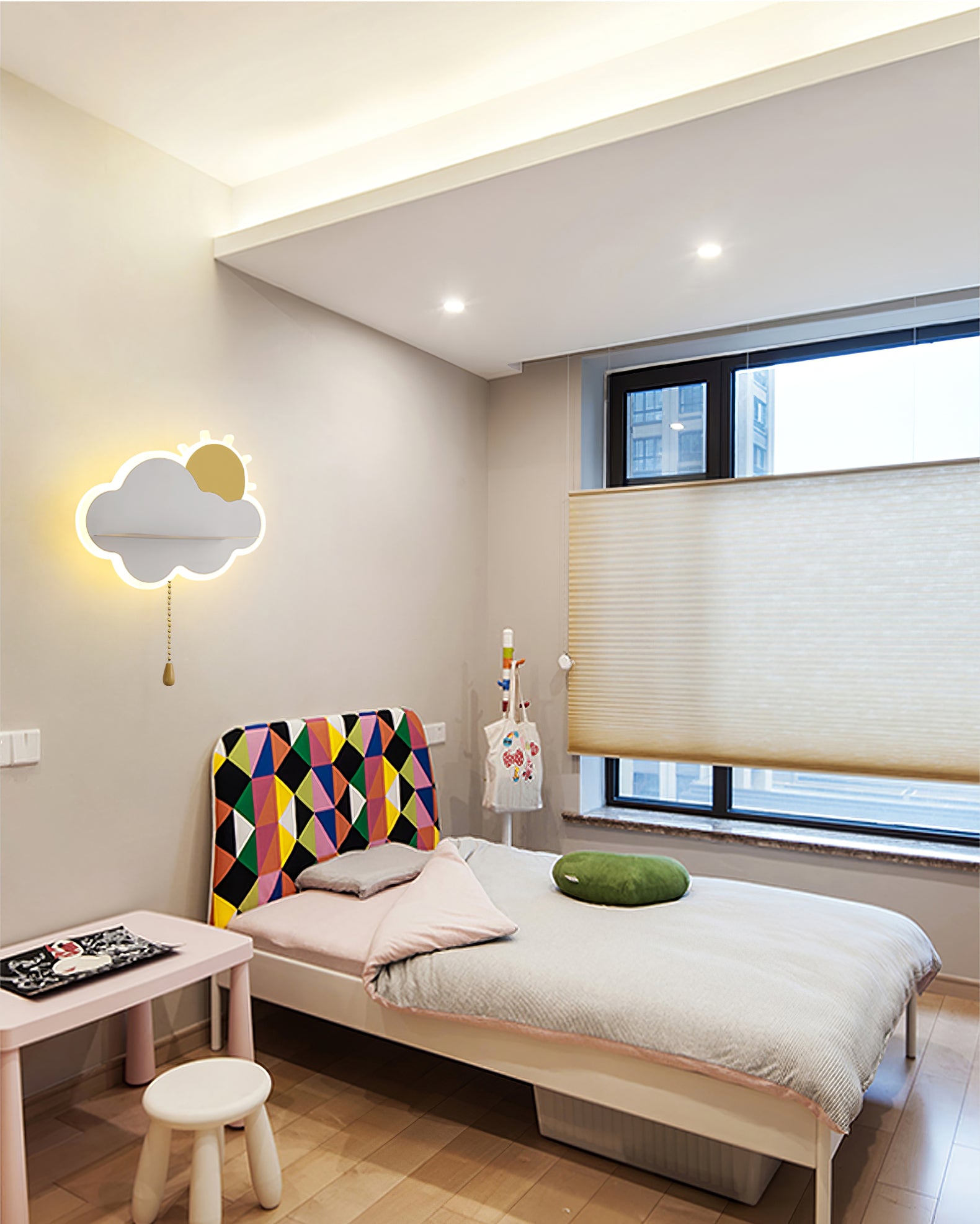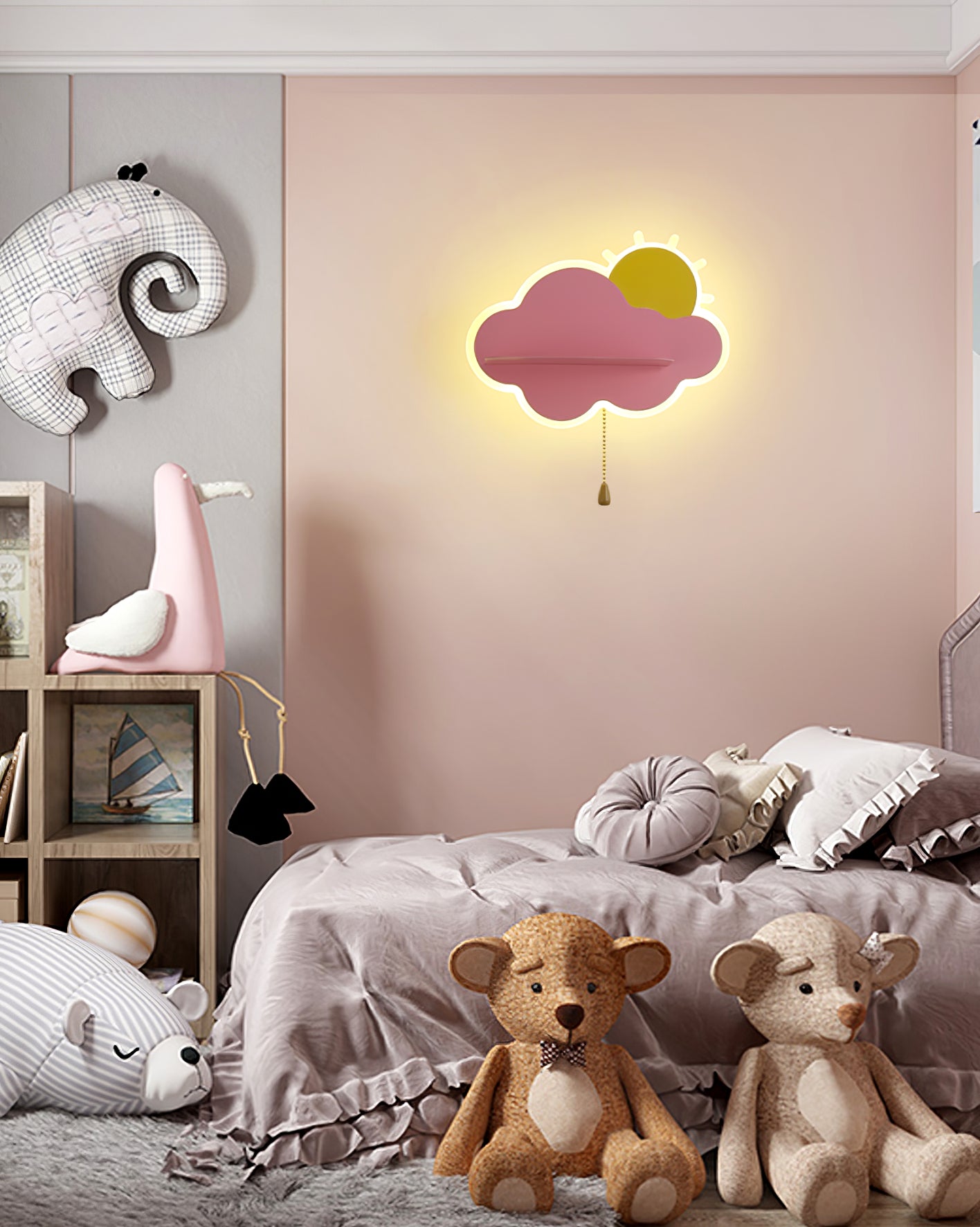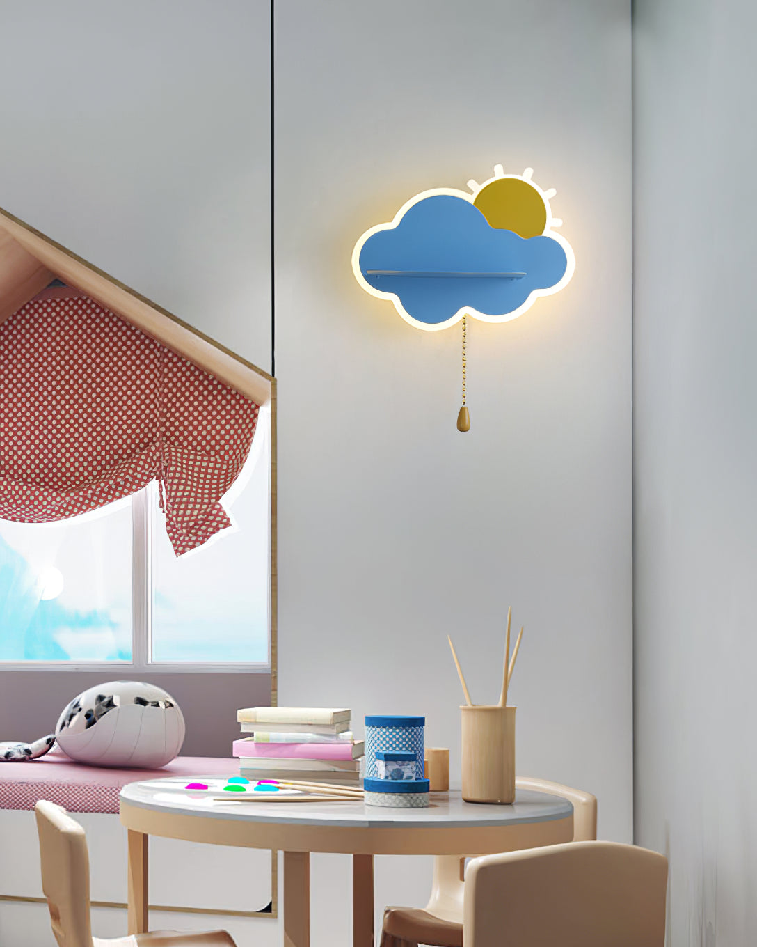 Oikein valittu valaistus voi lämmittää merkittävästi minkä tahansa sisustuksen sisustusta. Child Cloud -seinävalaisin täyttää tämän tehtävän täydellisesti, etenkin lastenhuoneessa. Tuotteessa on vakaa pohja metallilevyn muodossa ja tehokas lampunvarjostin valkoisen, sinisen tai vaaleanpunaisen pilven muodossa. Seinävalaisimessa olevien LED-polttimoiden ansiosta huoneen sisätilat kyllästyvät herkällä valolla.