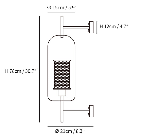 Kapselin koko: Halkaisija 15 cm x K 78 cm / ∅ 5,9" x K 30,7"