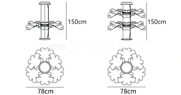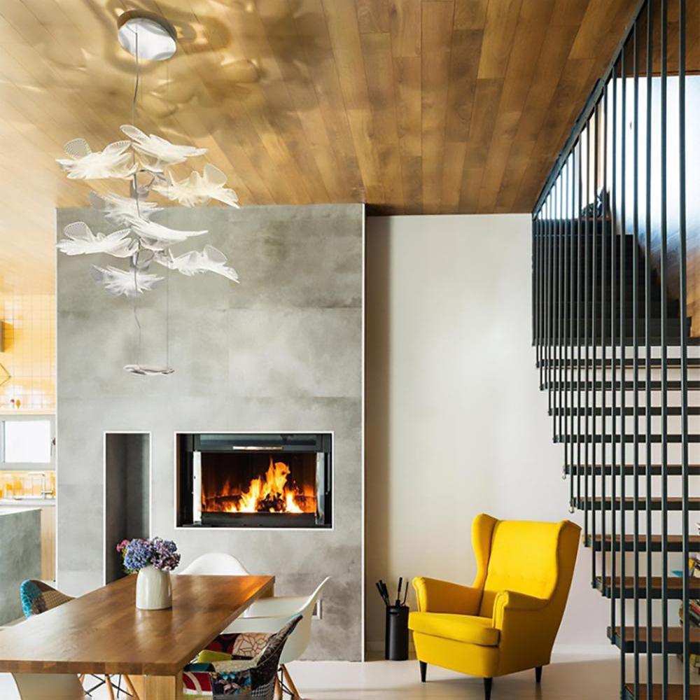 Keskiriippuva COB-runko toimii jäähdytyselementtinä ja lähettää epäsuoraa valoa, joka on suodatettu ja taitettu kolmella kirkkaalla lehden muotoisella pinnalla.