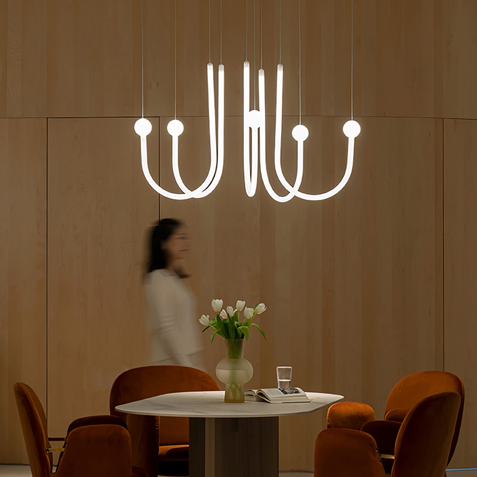 The Chord_Point_Pendant_Light on moderni versio klassisista kristallikruunuista. Sen minimaalinen muotoilu esittelee ohutta mutta kestävää metallijohtoa, joka on käytännöllisesti katsoen näkymätön, ja valopylväs antaa myös valaistuksen sekä piste- että napavalaistukseen. Se on täydellinen sekoitus klassista eleganssia ja modernia kauneutta.